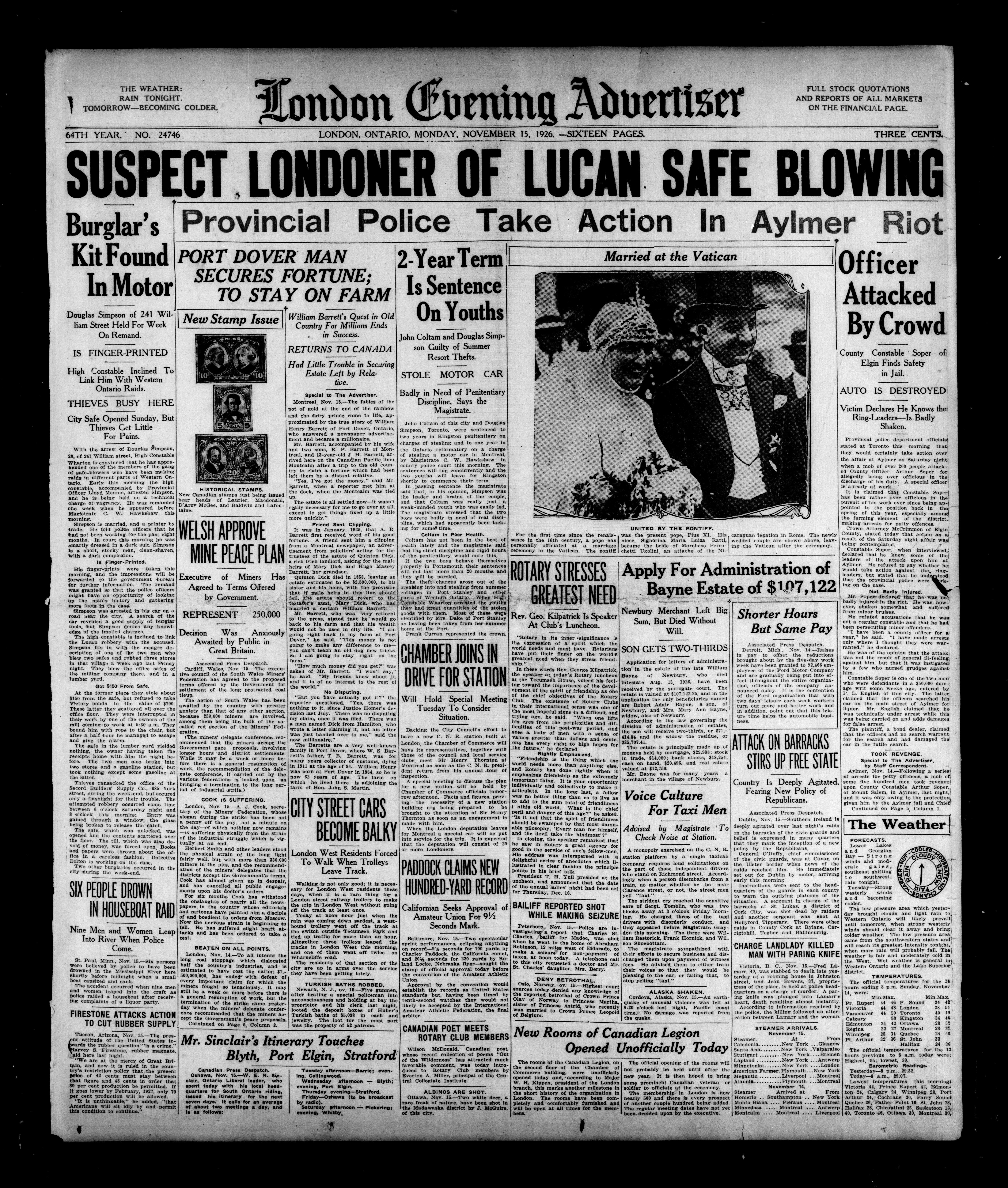 London Evening Advertiser. : London evening advertiser : 64th Year, No. 24746 (November 15, 1926)