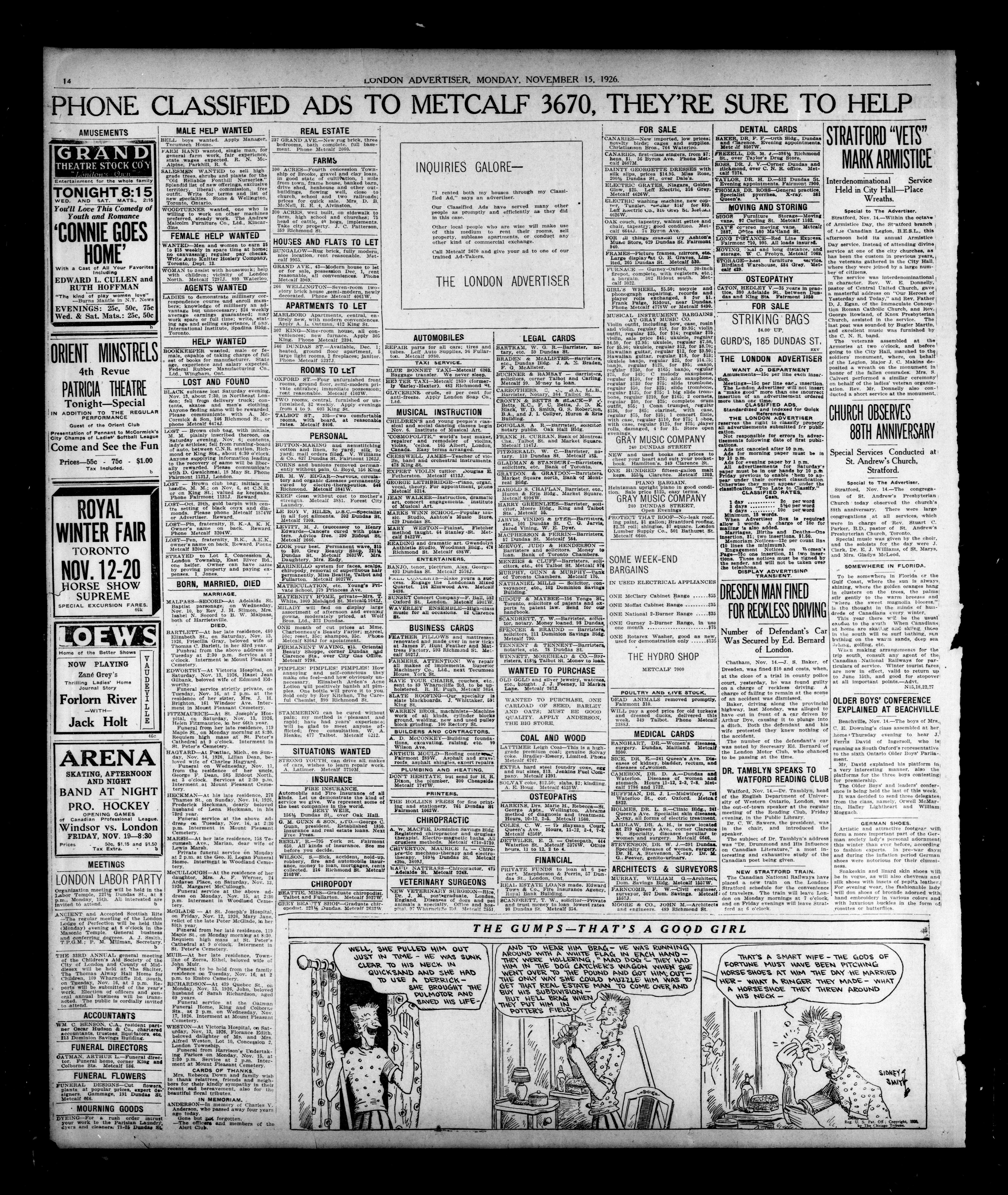 Aide London, Ontario : London Advertiser Company, Limited, [1926]; 16 images, 0 avec recherche en texte intégral