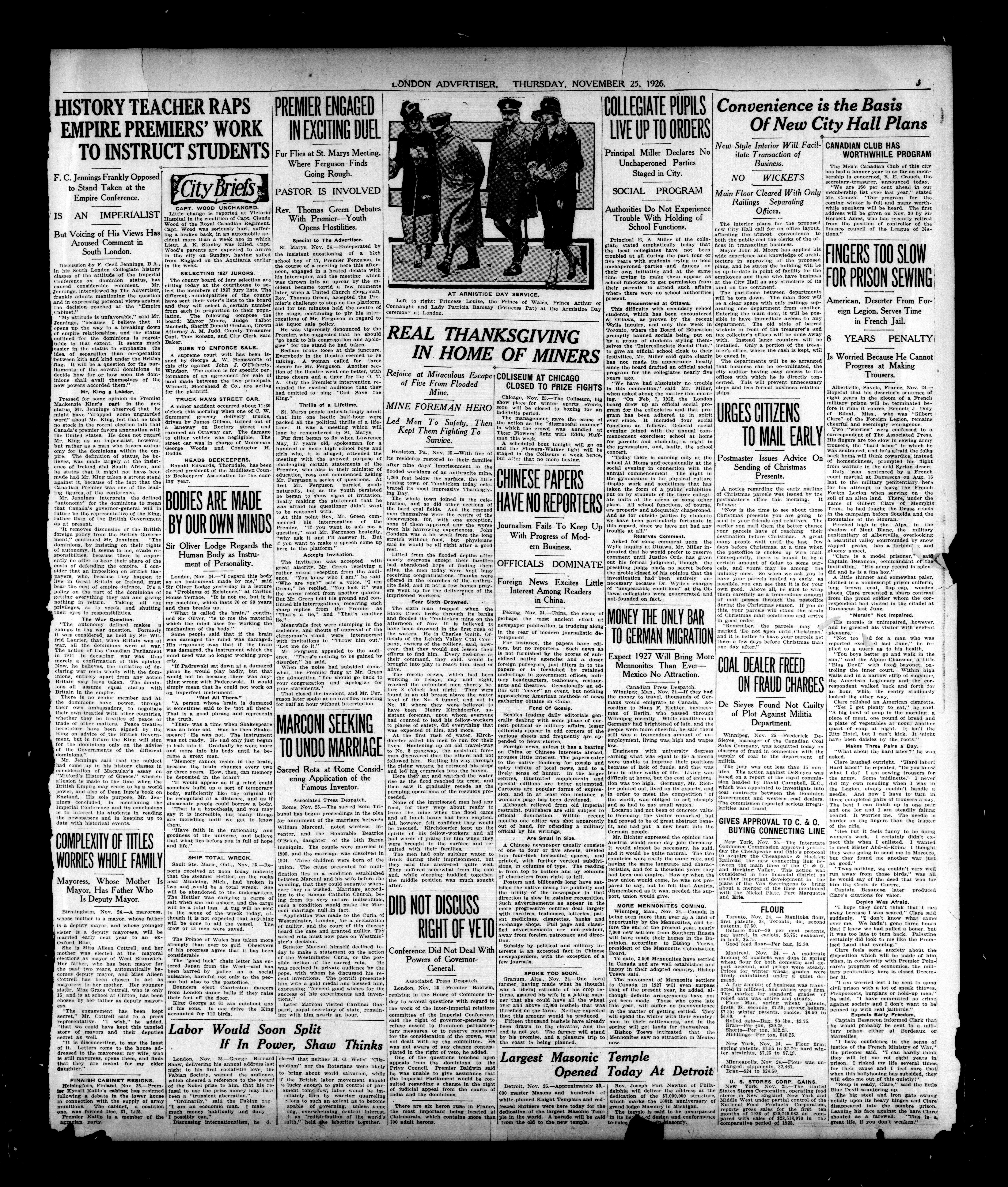 Aide London, Ontario : London Advertiser Company, Limited, [1926]; 18 images, 0 avec recherche en texte intégral