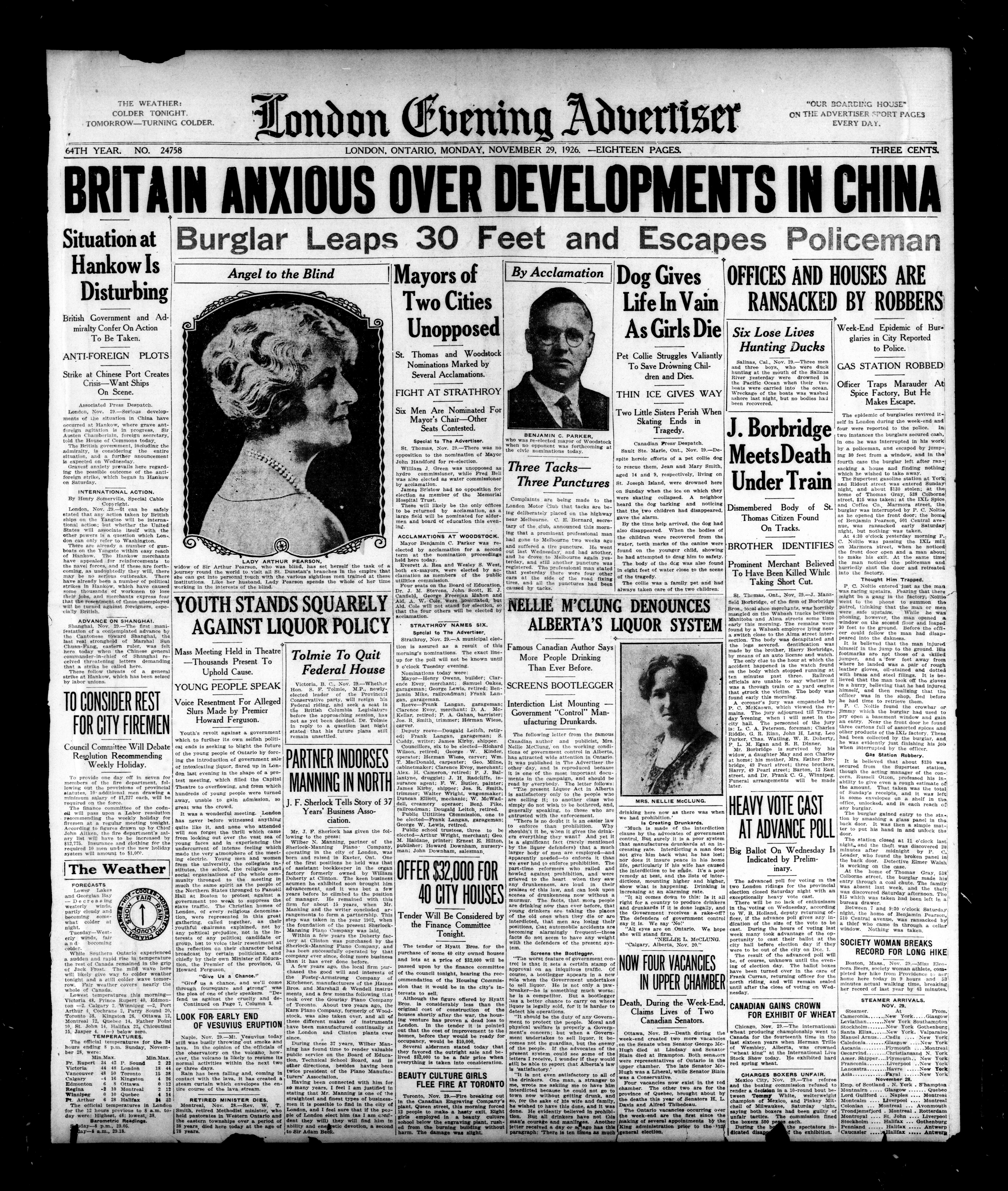 London, Ontario : London Advertiser Company, Limited, [1926]; 18 images, 0 avec recherche en texte intégral