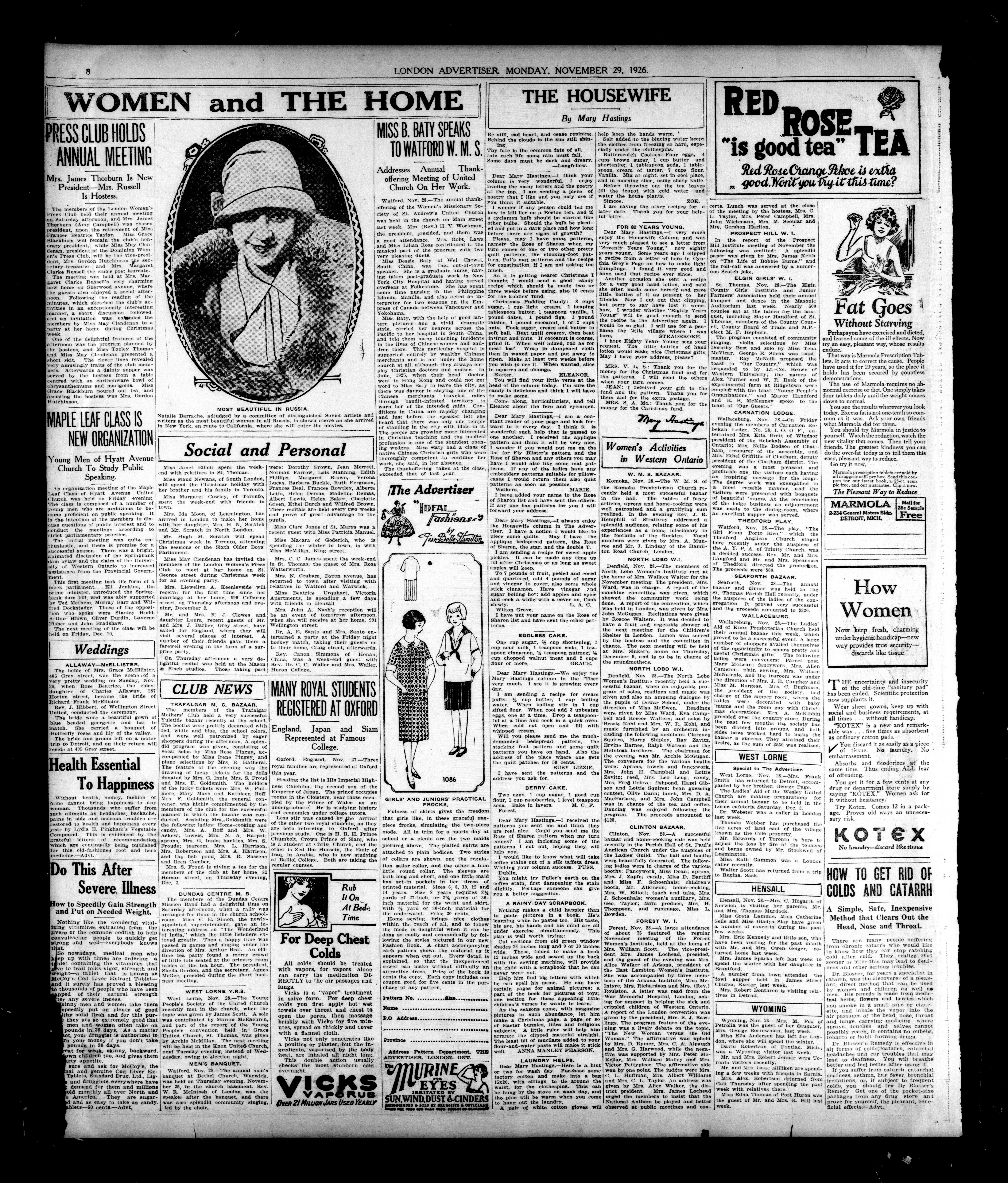 London, Ontario : London Advertiser Company, Limited, [1926]; 18 images, 0 avec recherche en texte intégral