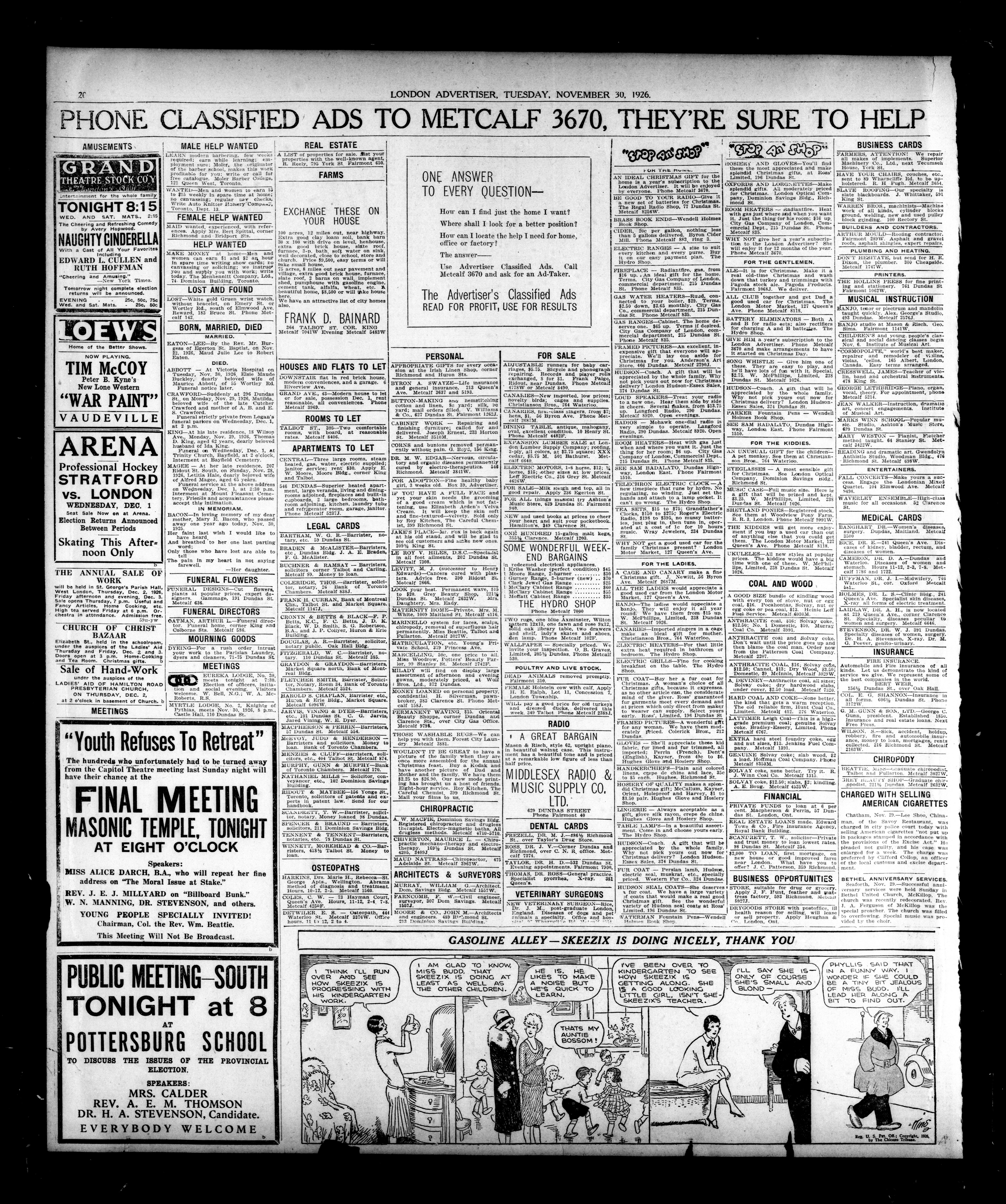 London, Ontario : London Advertiser Company, Limited, [1926]; 22 images, 0 avec recherche en texte intégral