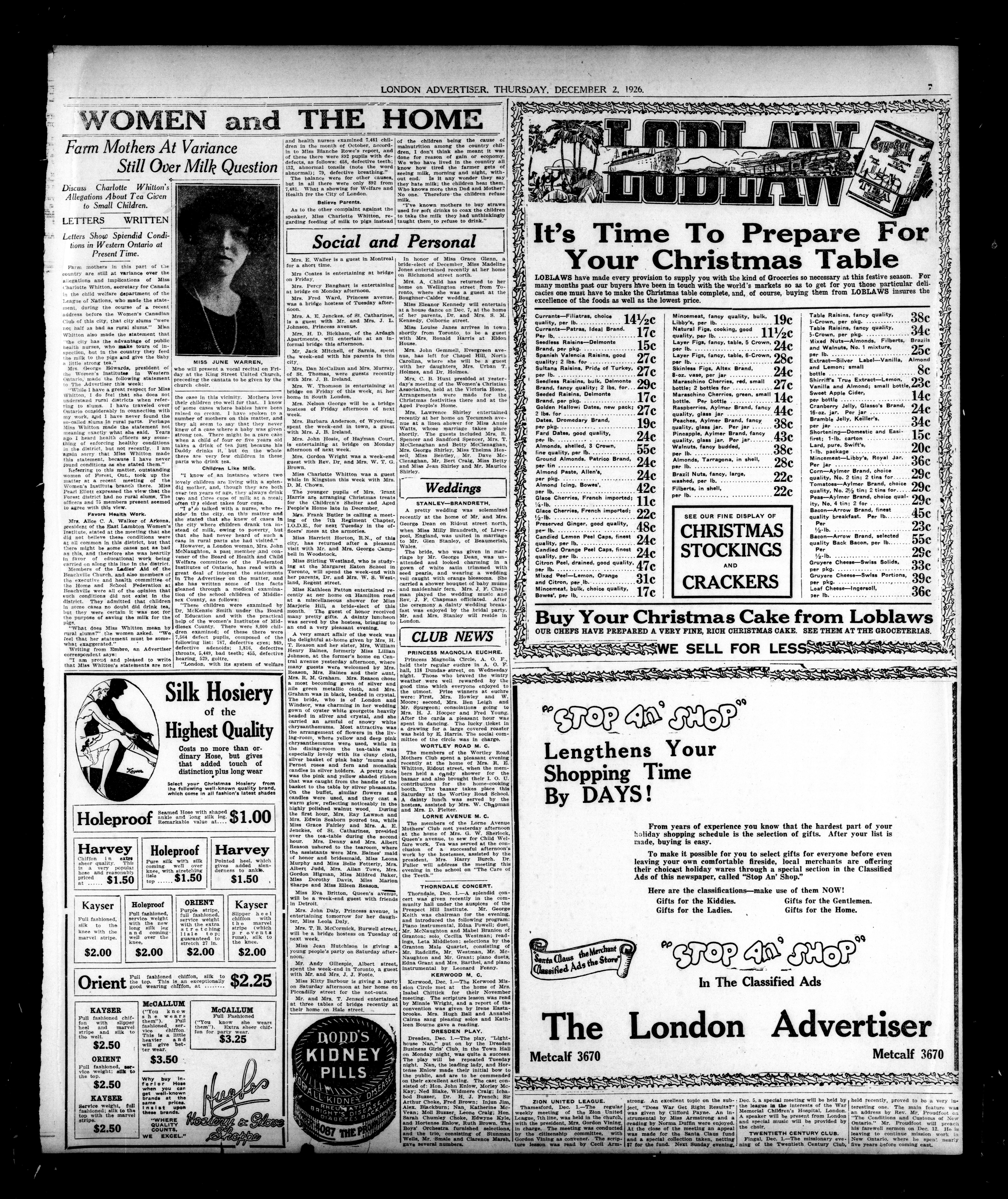 London, Ontario : London Advertiser Company, Limited, [1926]; 18 images, 0 avec recherche en texte intégral