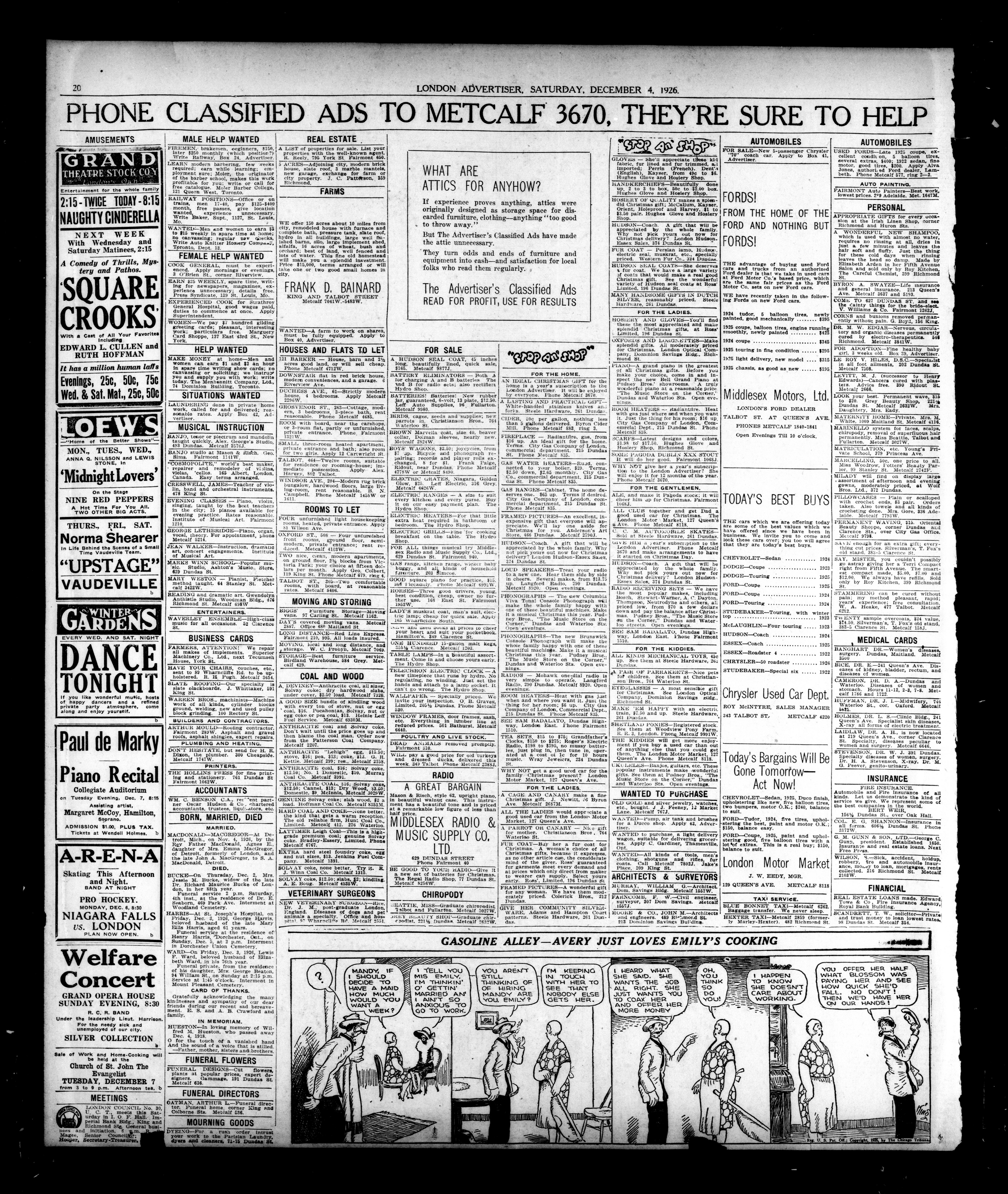 London, Ontario : London Advertiser Company, Limited, [1926]; 22 images, 0 avec recherche en texte intégral