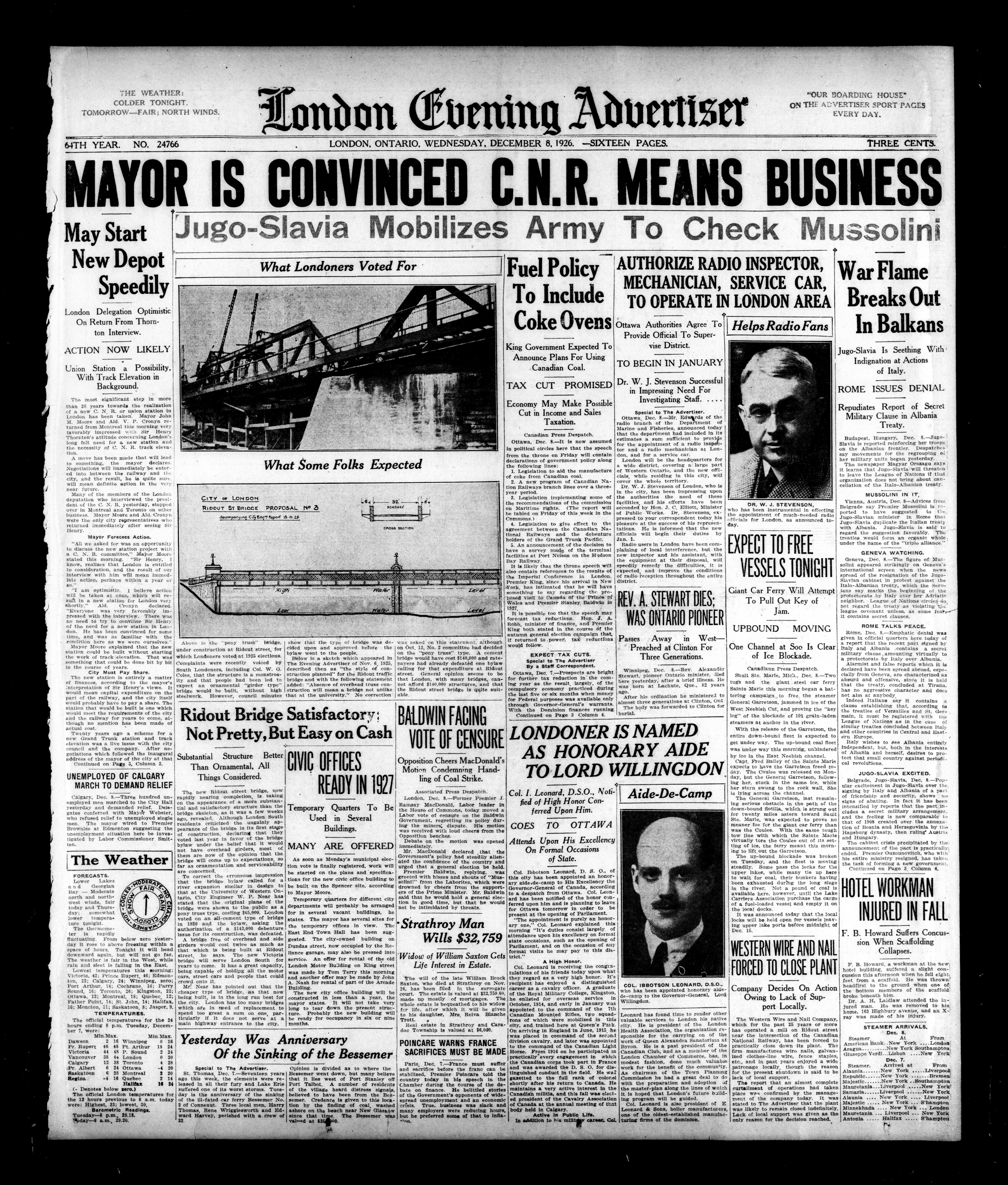 London, Ontario : London Advertiser Company, Limited, [1926]; 16 images, 0 avec recherche en texte intégral