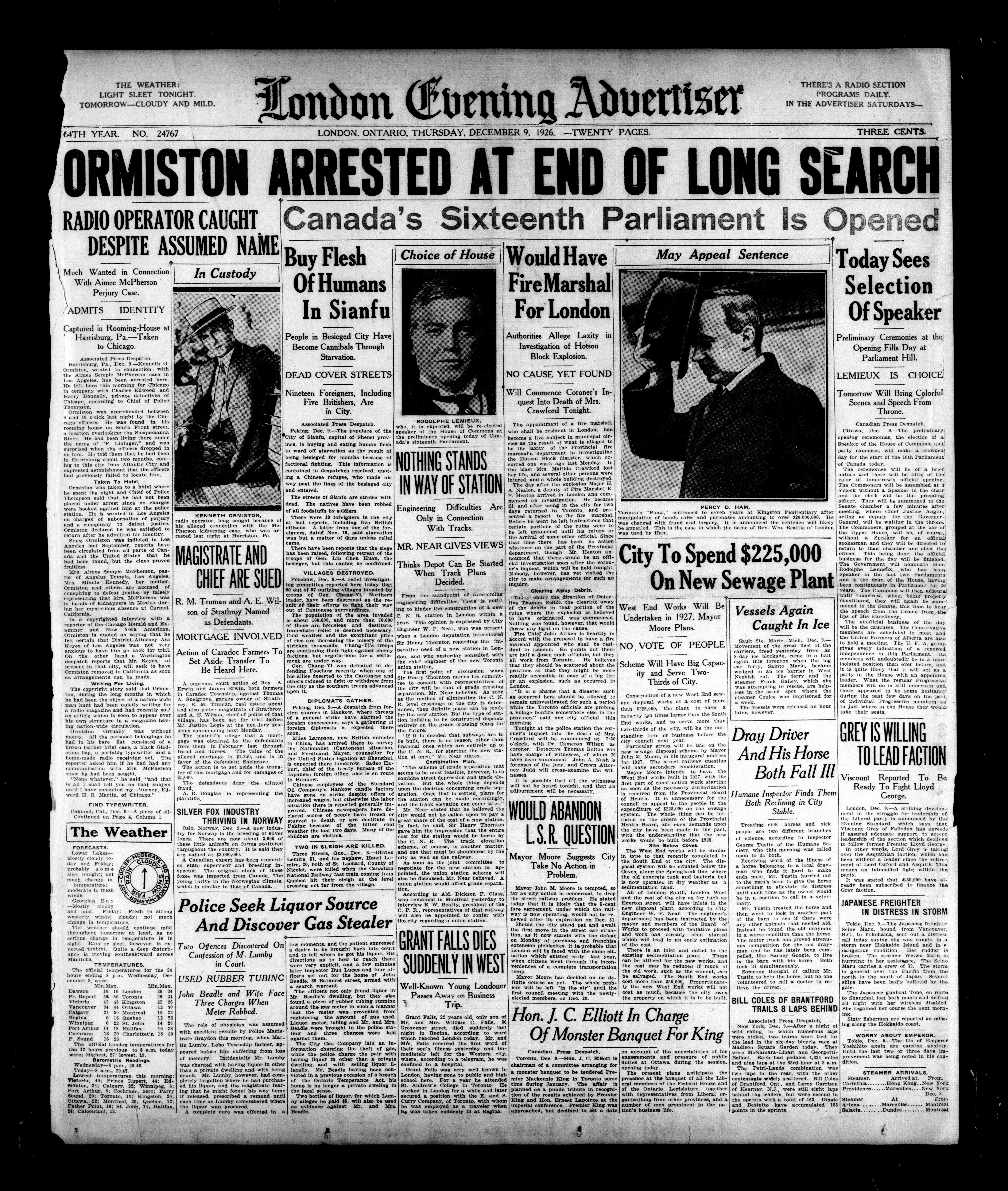 London, Ontario : London Advertiser Company, Limited, [1926]; 20 images, 0 avec recherche en texte intégral