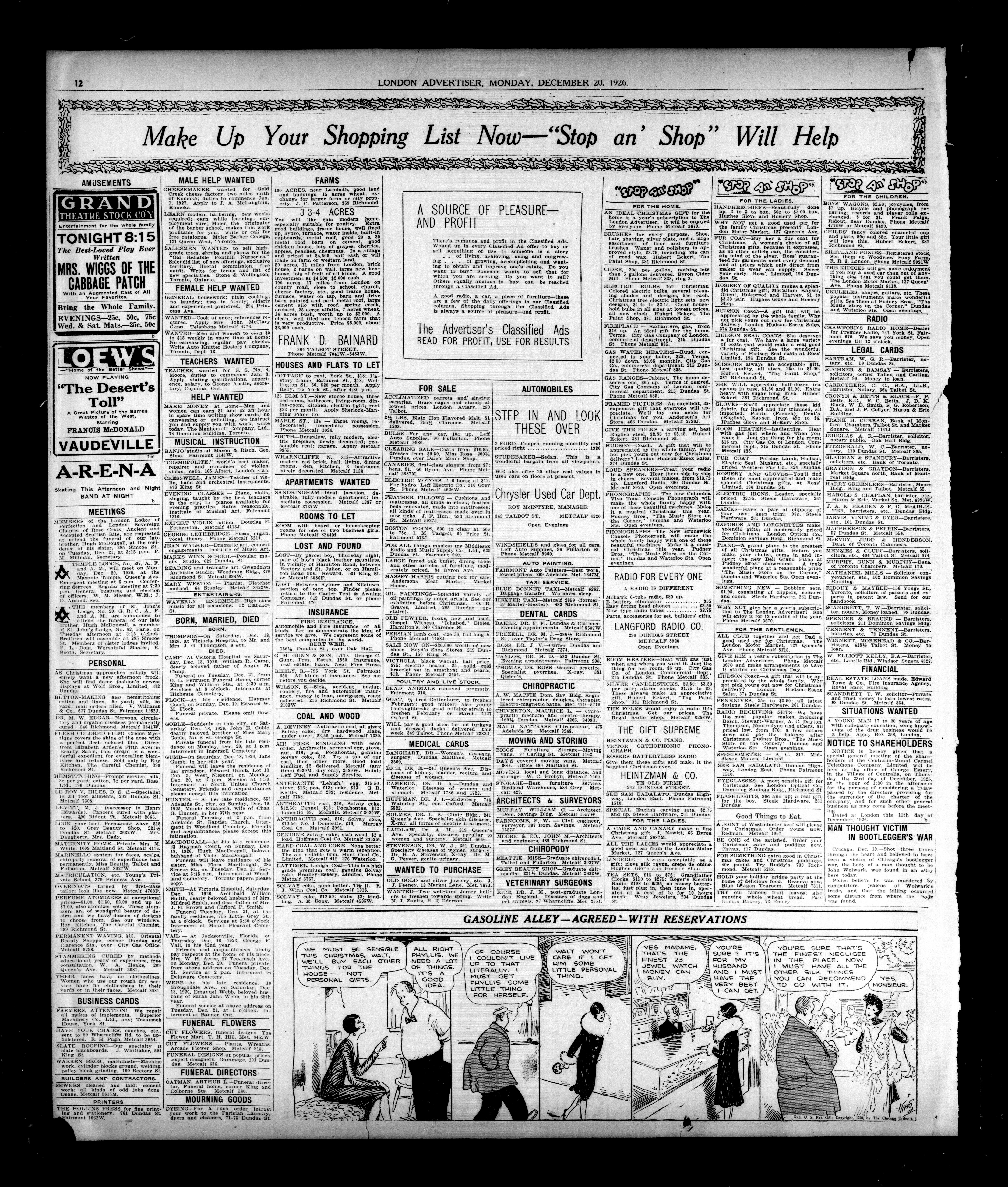 Aide London, Ontario : London Advertiser Company, Limited, [1926]; 14 images, 0 avec recherche en texte intégral