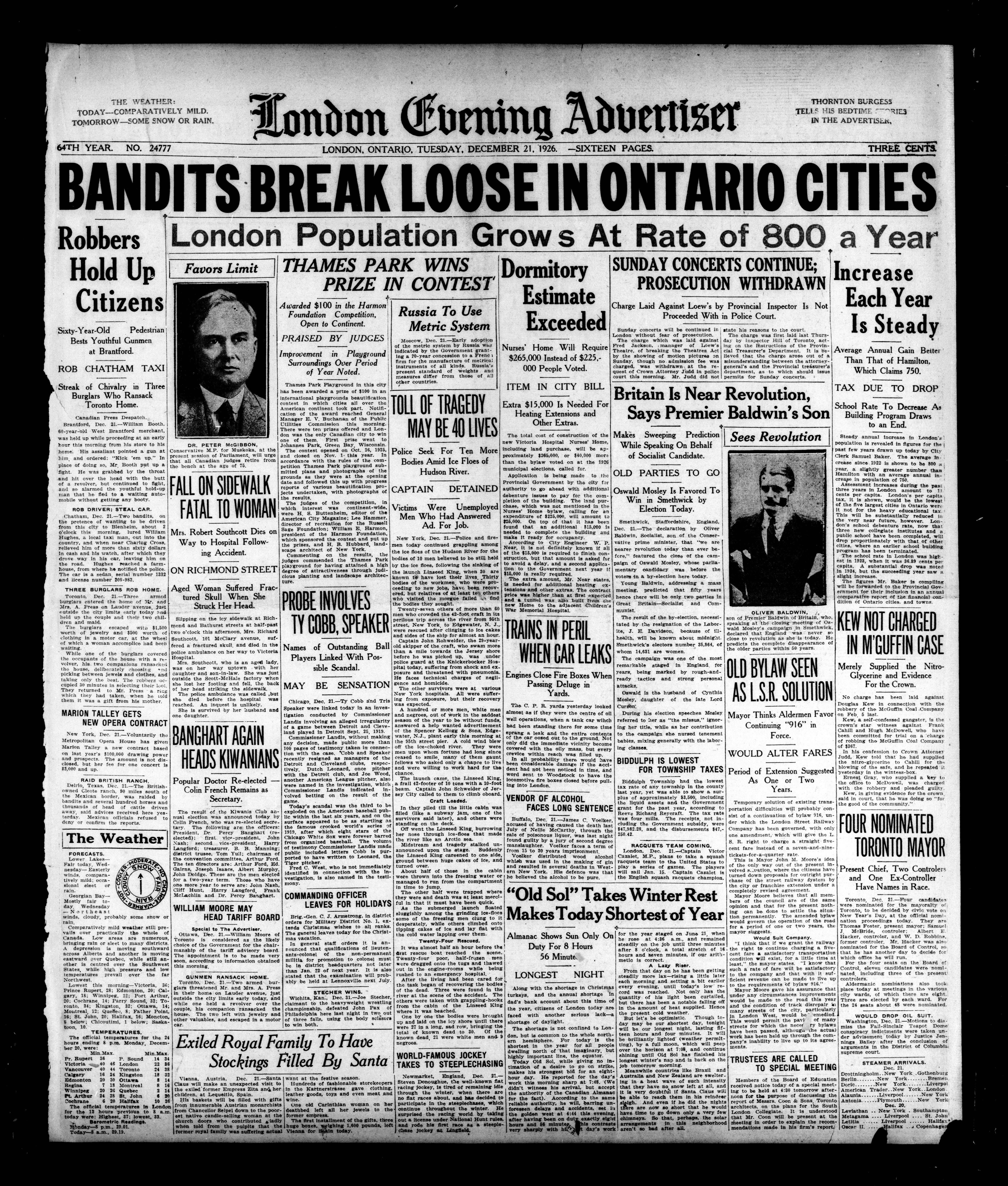 London, Ontario : London Advertiser Company, Limited, [1926]; 16 images, 0 avec recherche en texte intégral