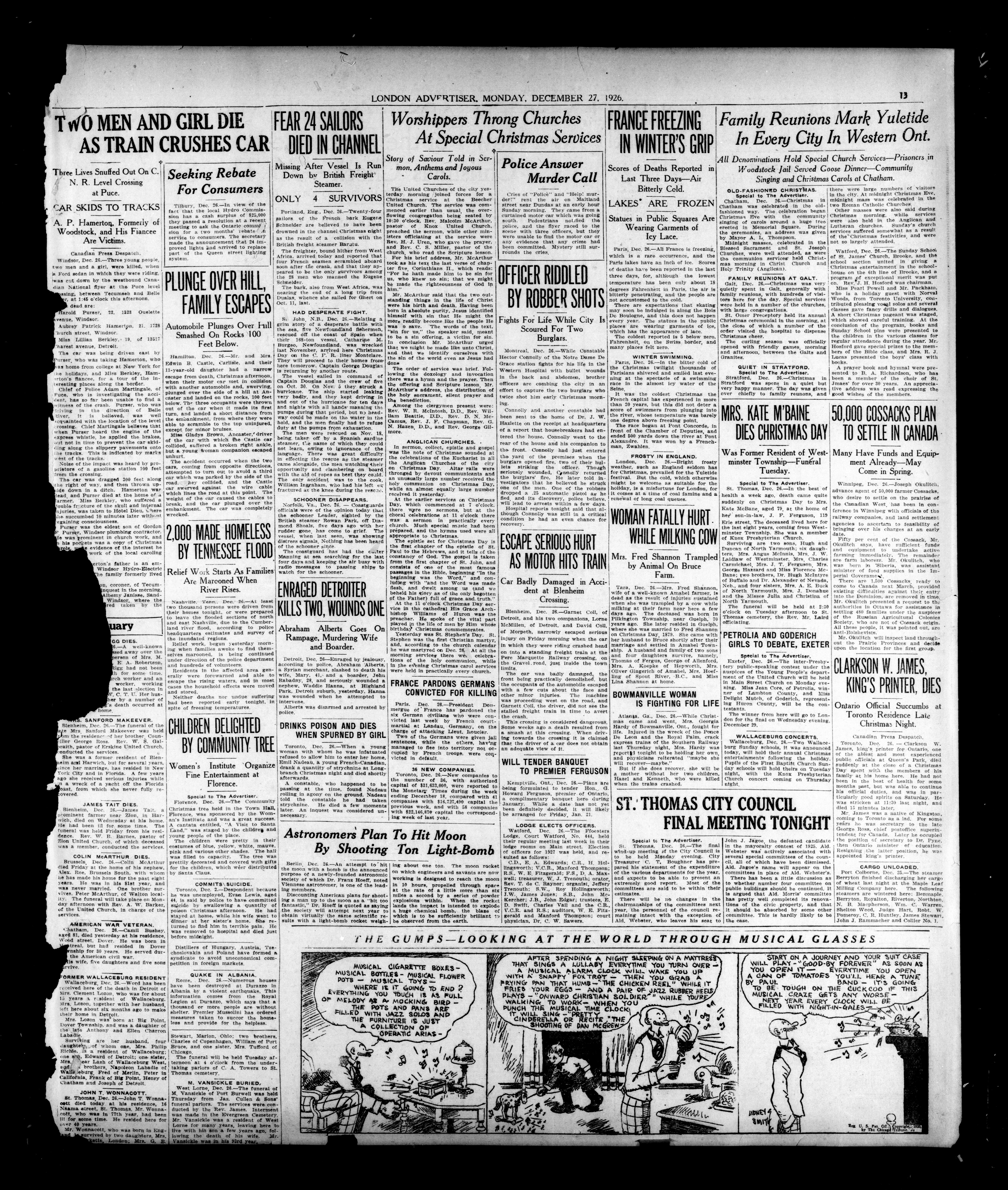 London, Ontario : London Advertiser Company, Limited, [1926]; 14 images, 0 avec recherche en texte intégral