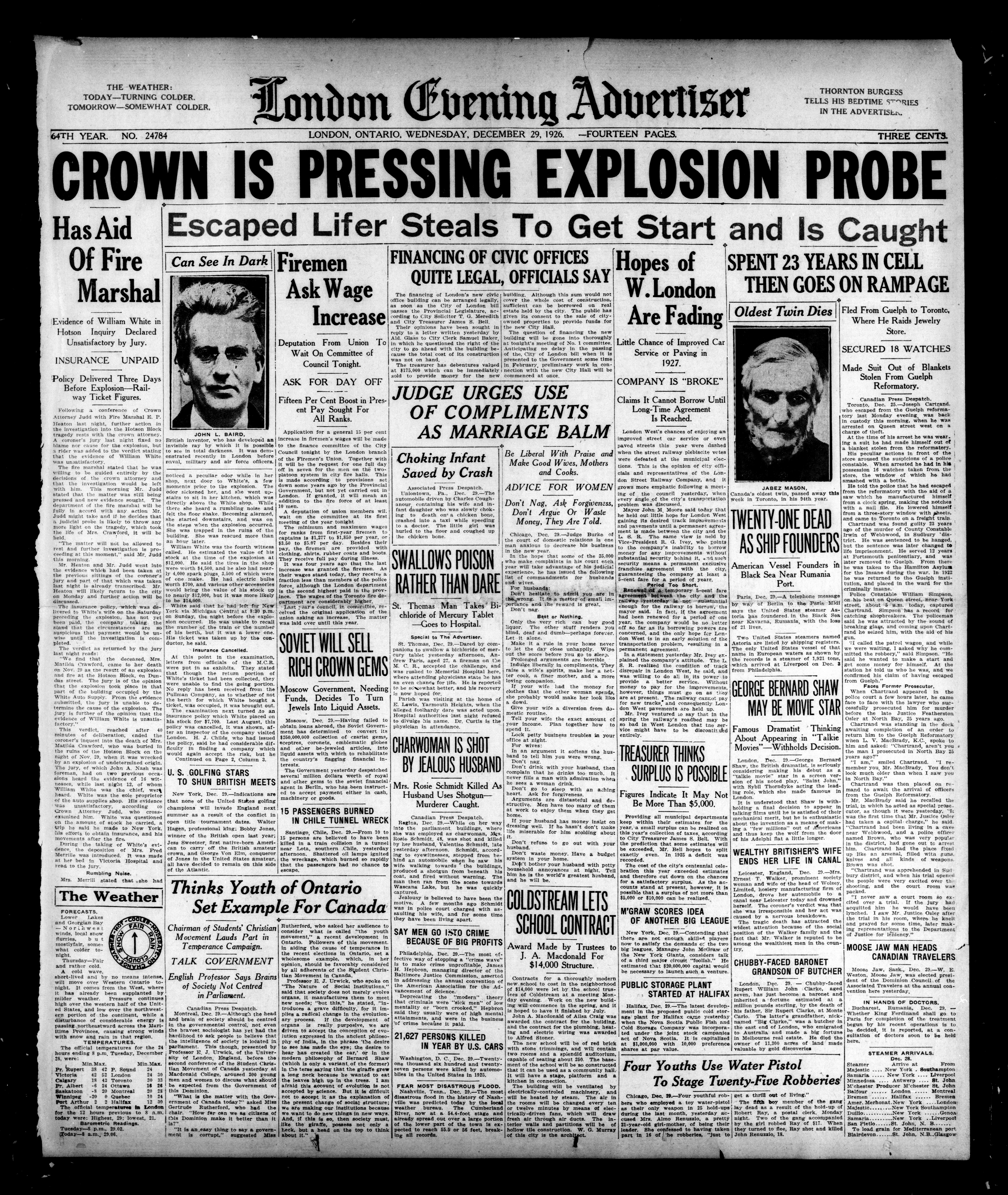 London, Ontario : London Advertiser Company, Limited, [1926]; 14 images, 0 avec recherche en texte intégral