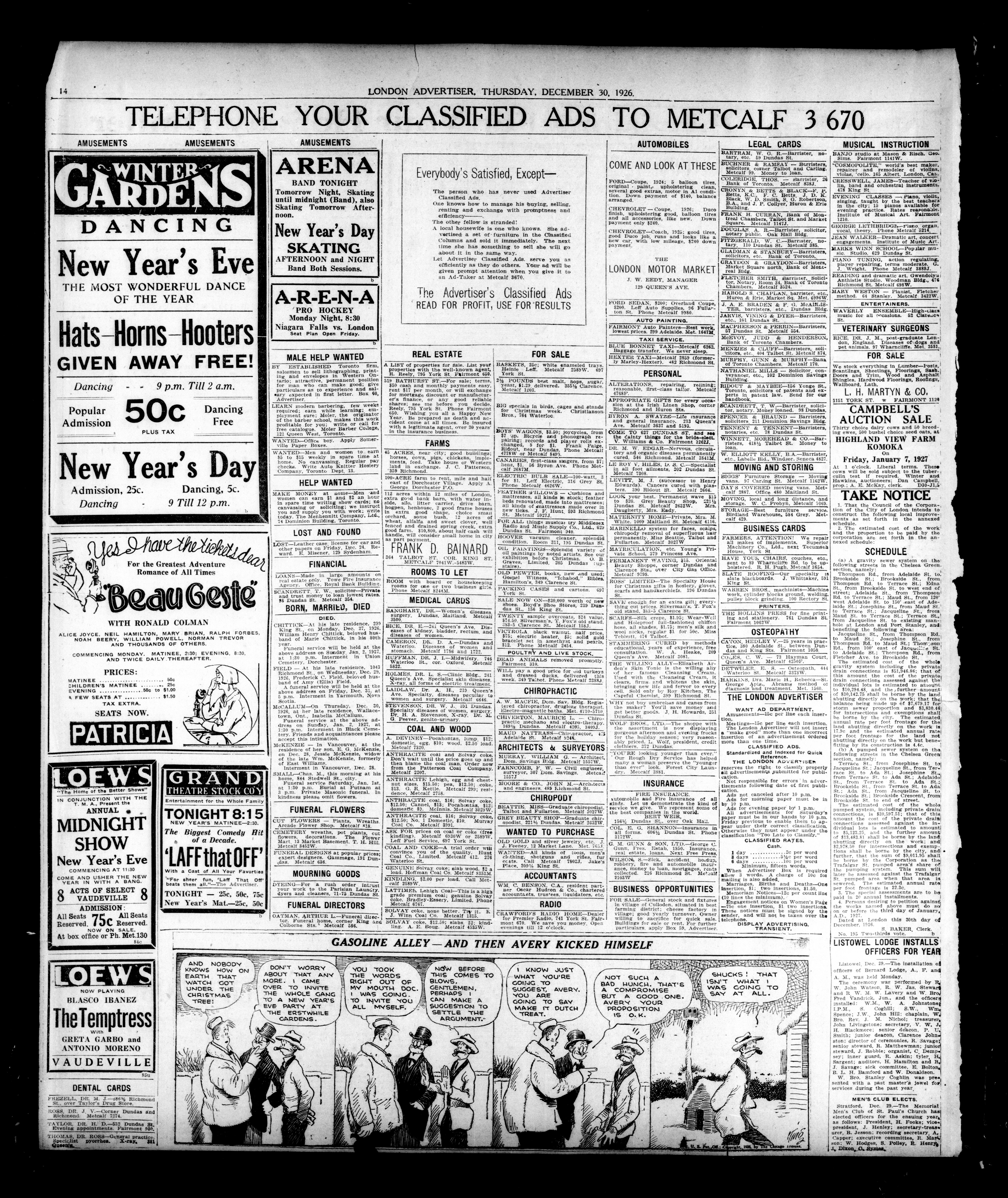 London, Ontario : London Advertiser Company, Limited, [1926]; 16 images, 0 avec recherche en texte intégral