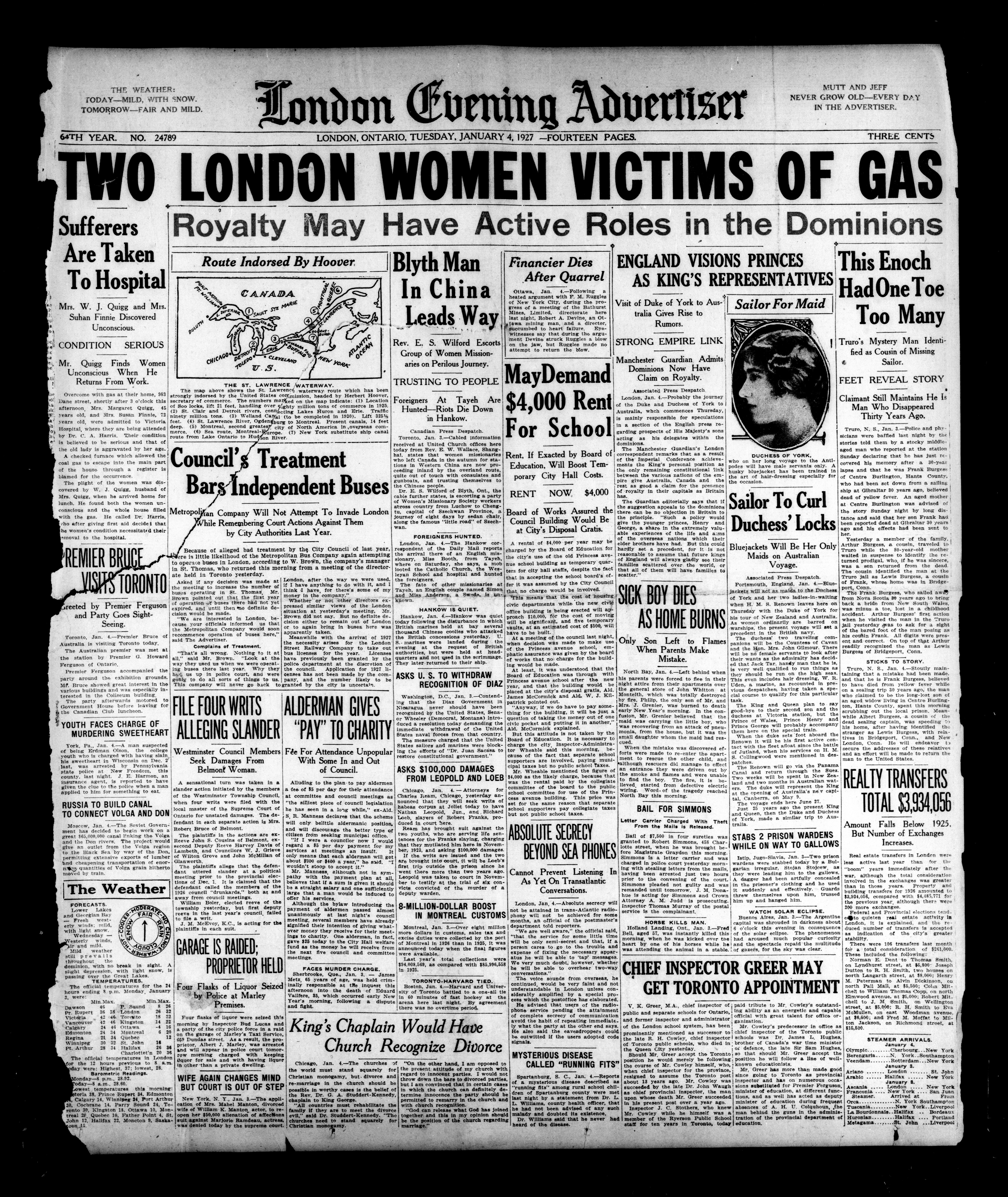 Aide London, Ontario : London Advertiser Company, Limited, [1927]; 14 images, 0 avec recherche en texte intégral