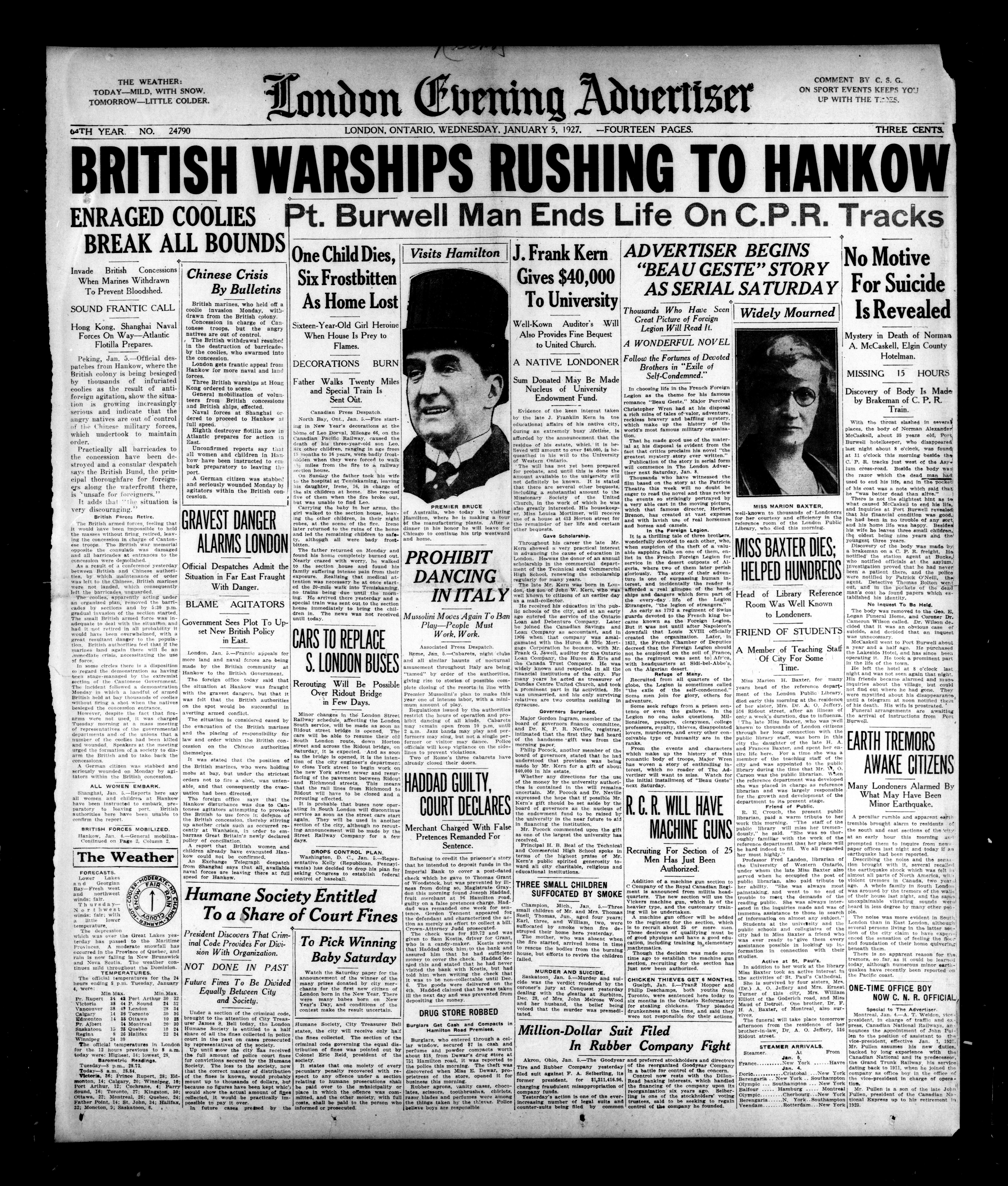 London, Ontario : London Advertiser Company, Limited, [1927]; 14 images, 0 avec recherche en texte intégral