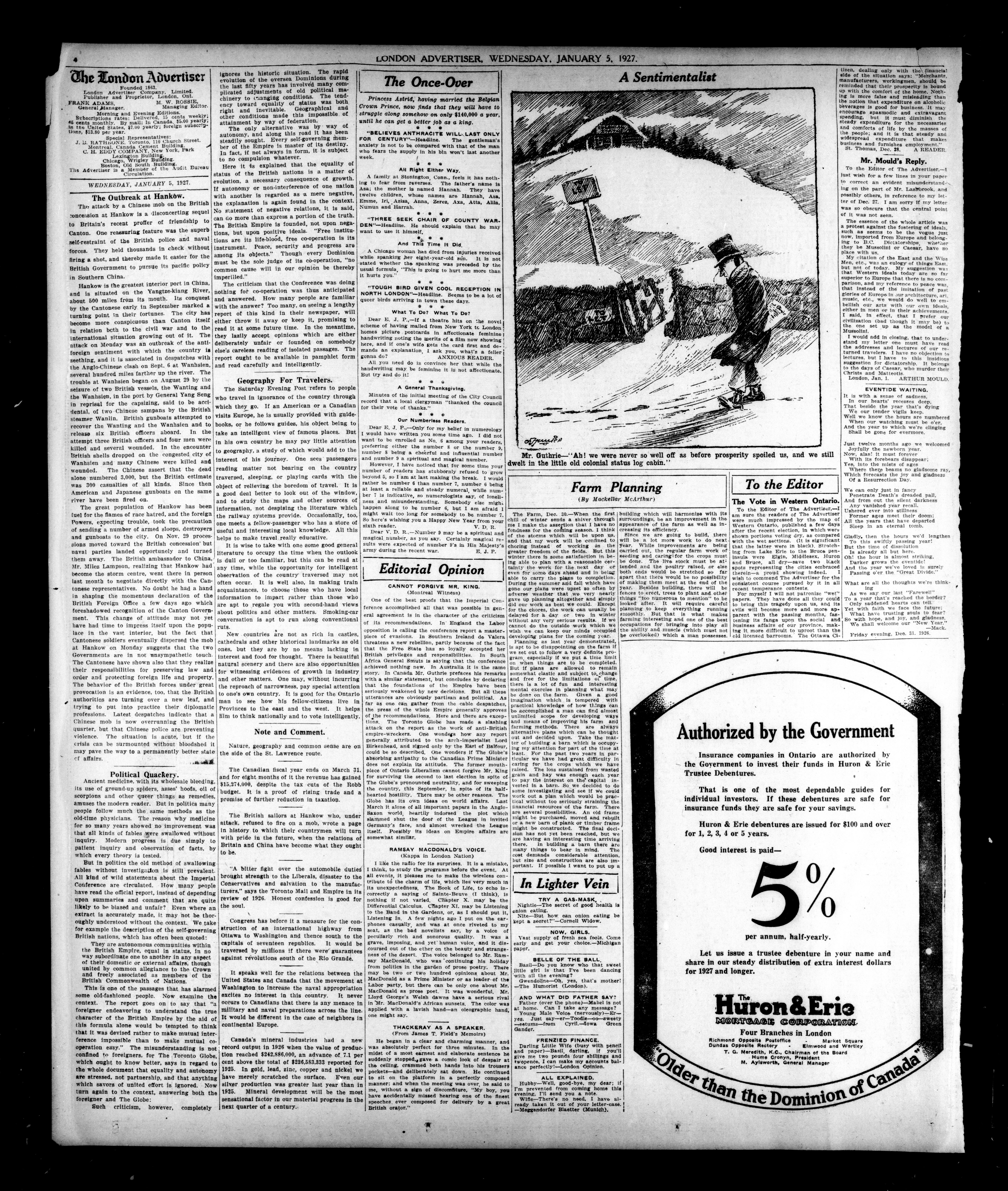 London, Ontario : London Advertiser Company, Limited, [1927]; 14 images, 0 avec recherche en texte intégral