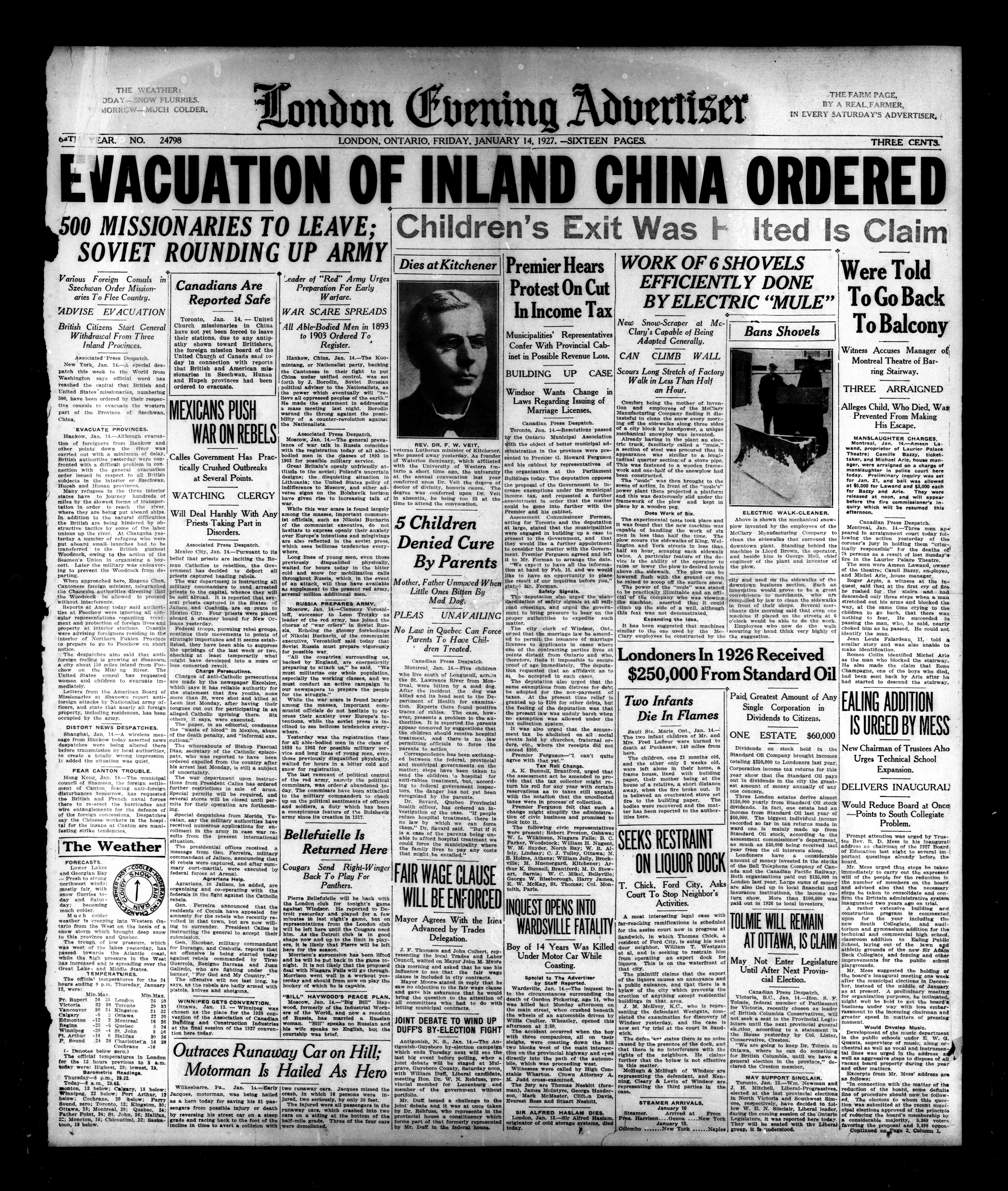 London, Ontario : London Advertiser Company, Limited, [1927]; 16 images, 0 avec recherche en texte intégral