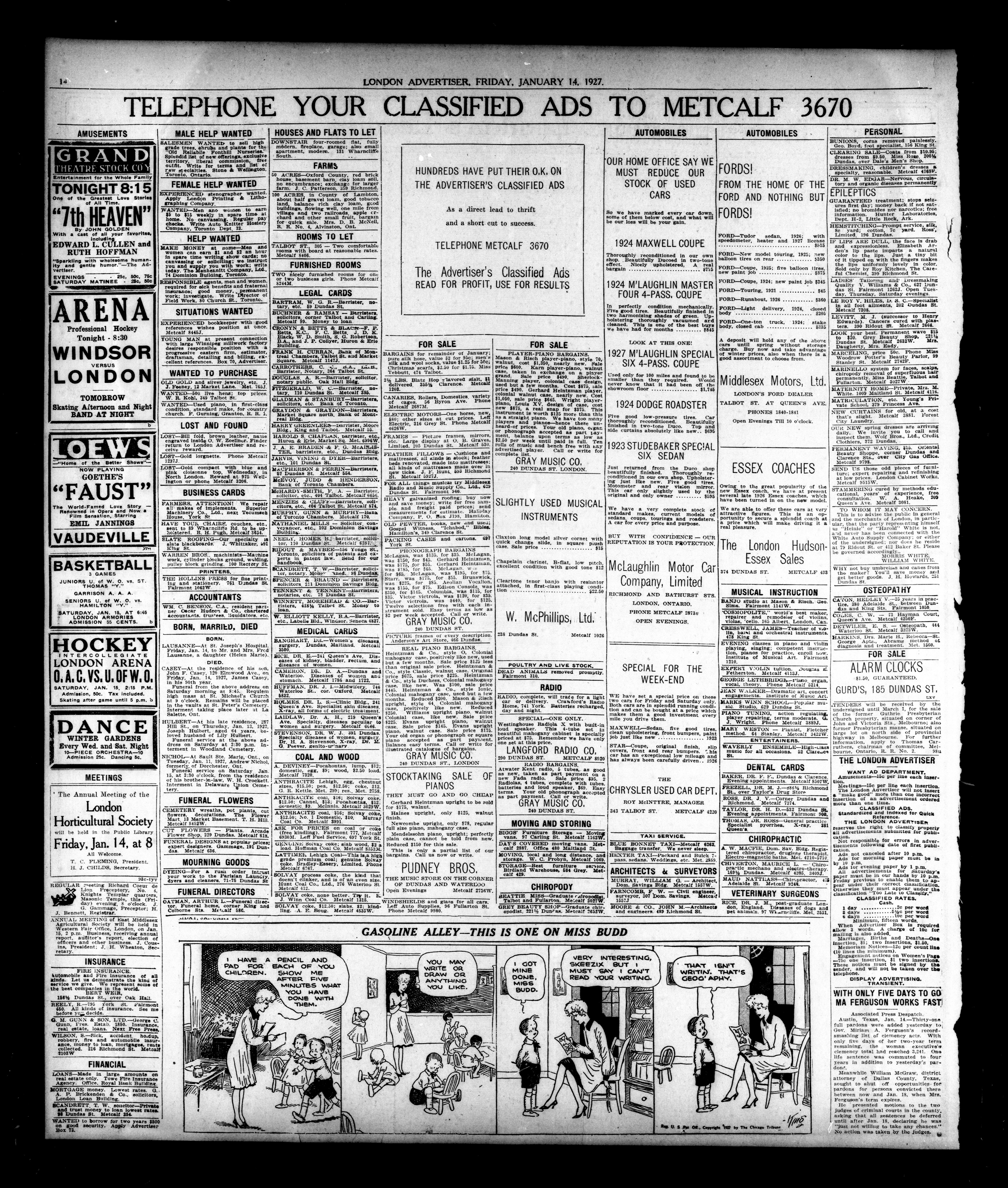 London, Ontario : London Advertiser Company, Limited, [1927]; 16 images, 0 avec recherche en texte intégral