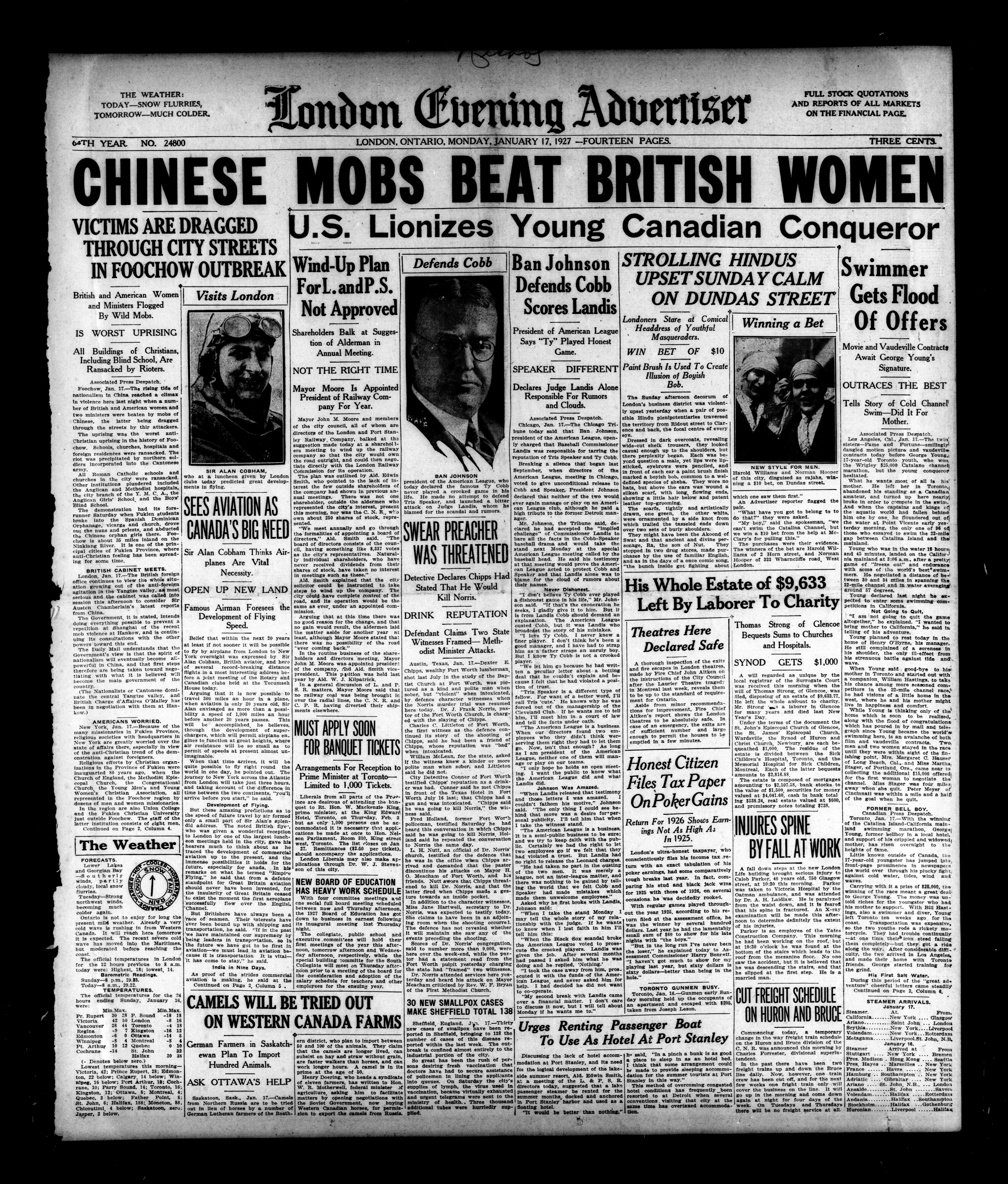 London, Ontario : London Advertiser Company, Limited, [1927]; 14 images, 0 avec recherche en texte intégral