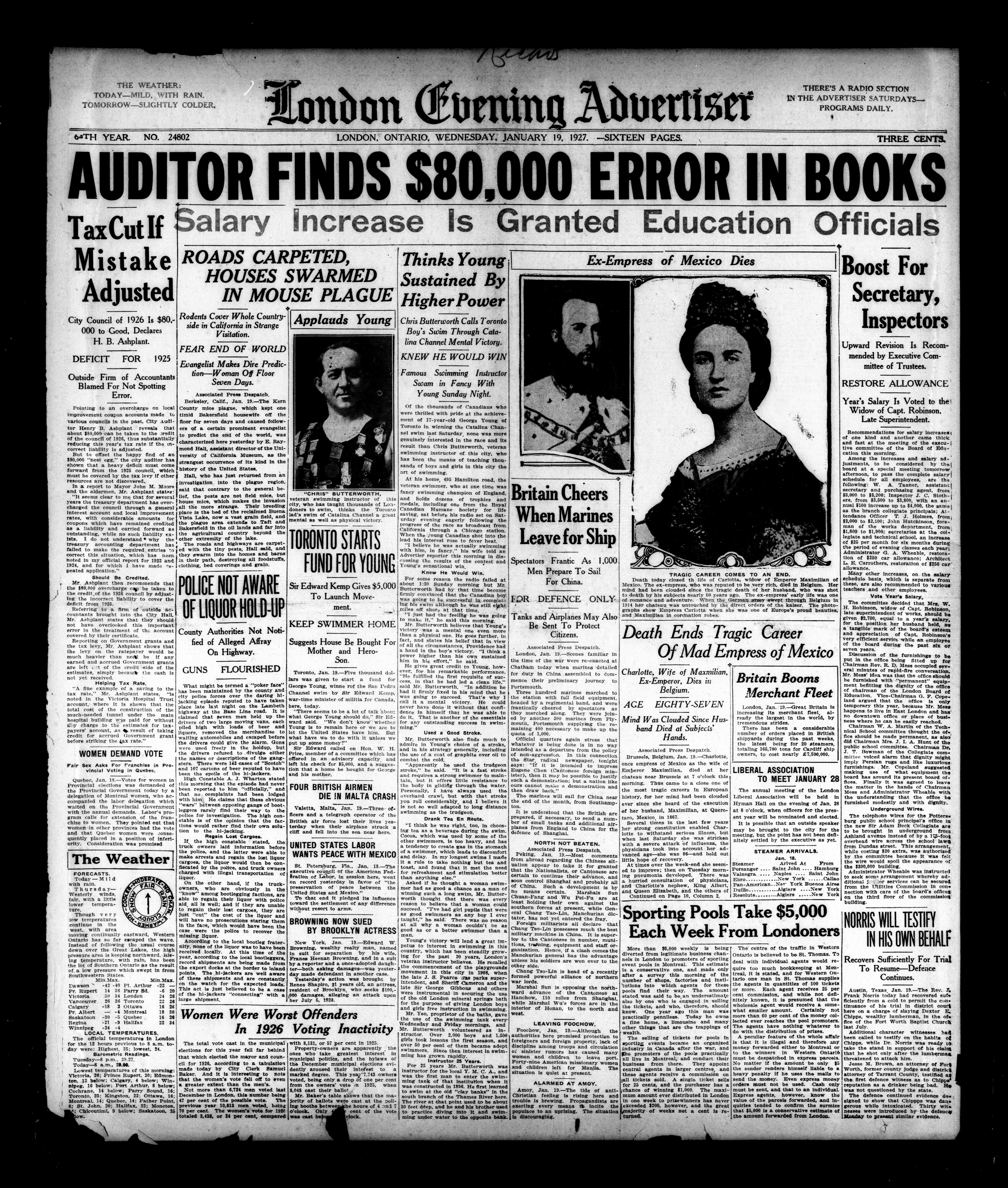 London, Ontario : London Advertiser Company, Limited, [1927]; 16 images, 0 avec recherche en texte intégral