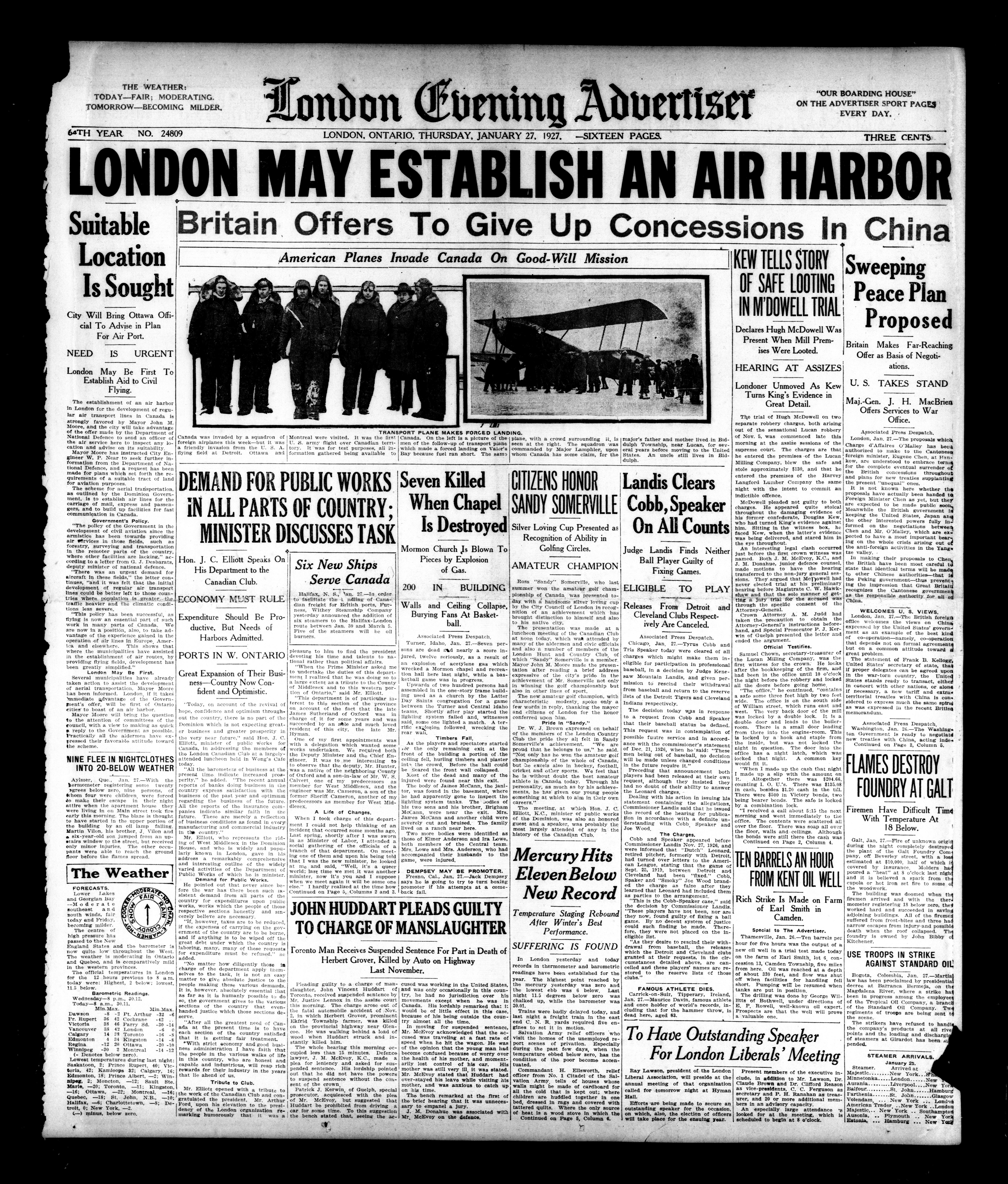 London Evening Advertiser. : London evening advertiser : 64th Year, No. 24809 (January 27, 1927)
