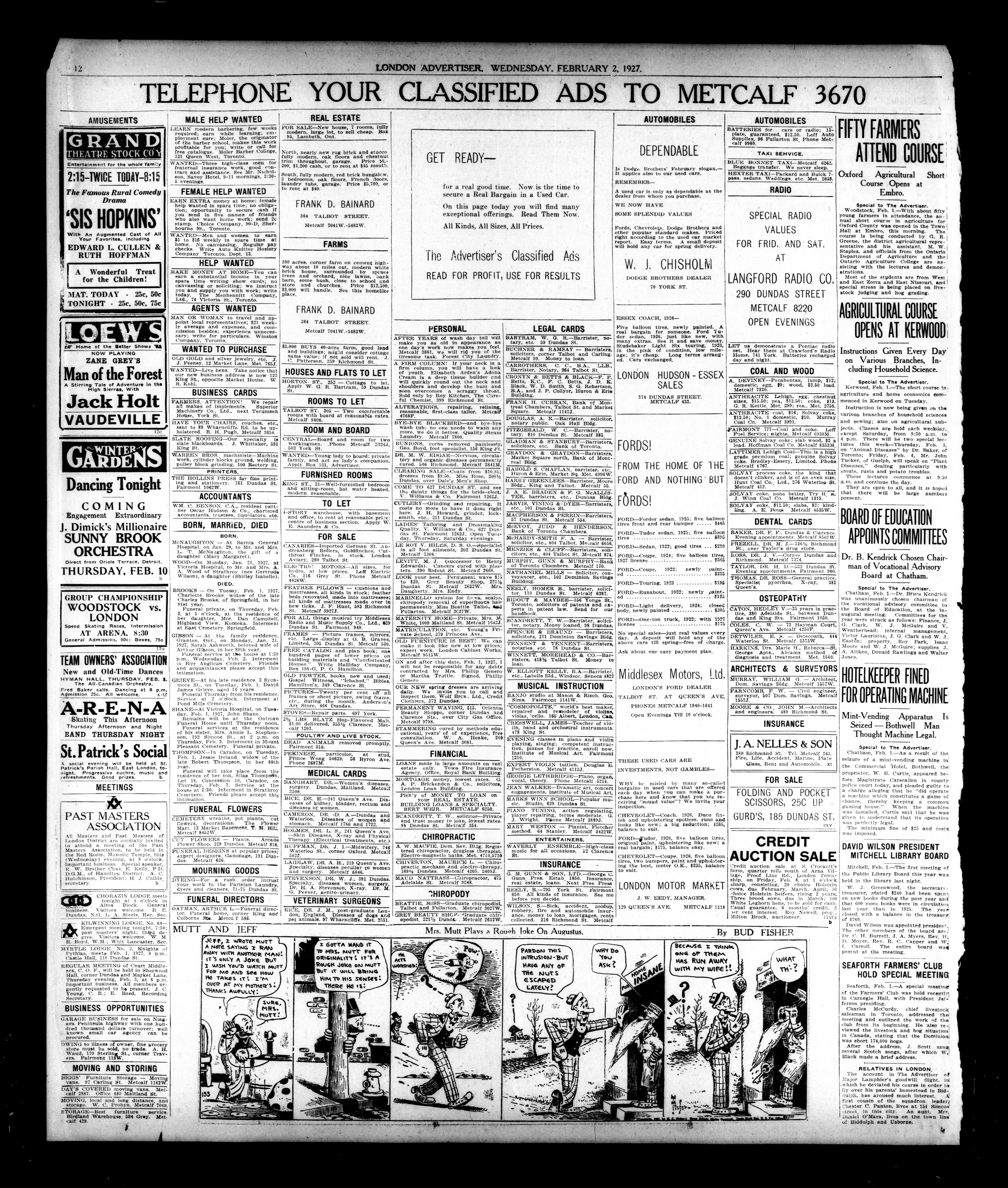 London Evening Advertiser. : London evening advertiser : 64th Year, No. 24814 (February 2, 1927)