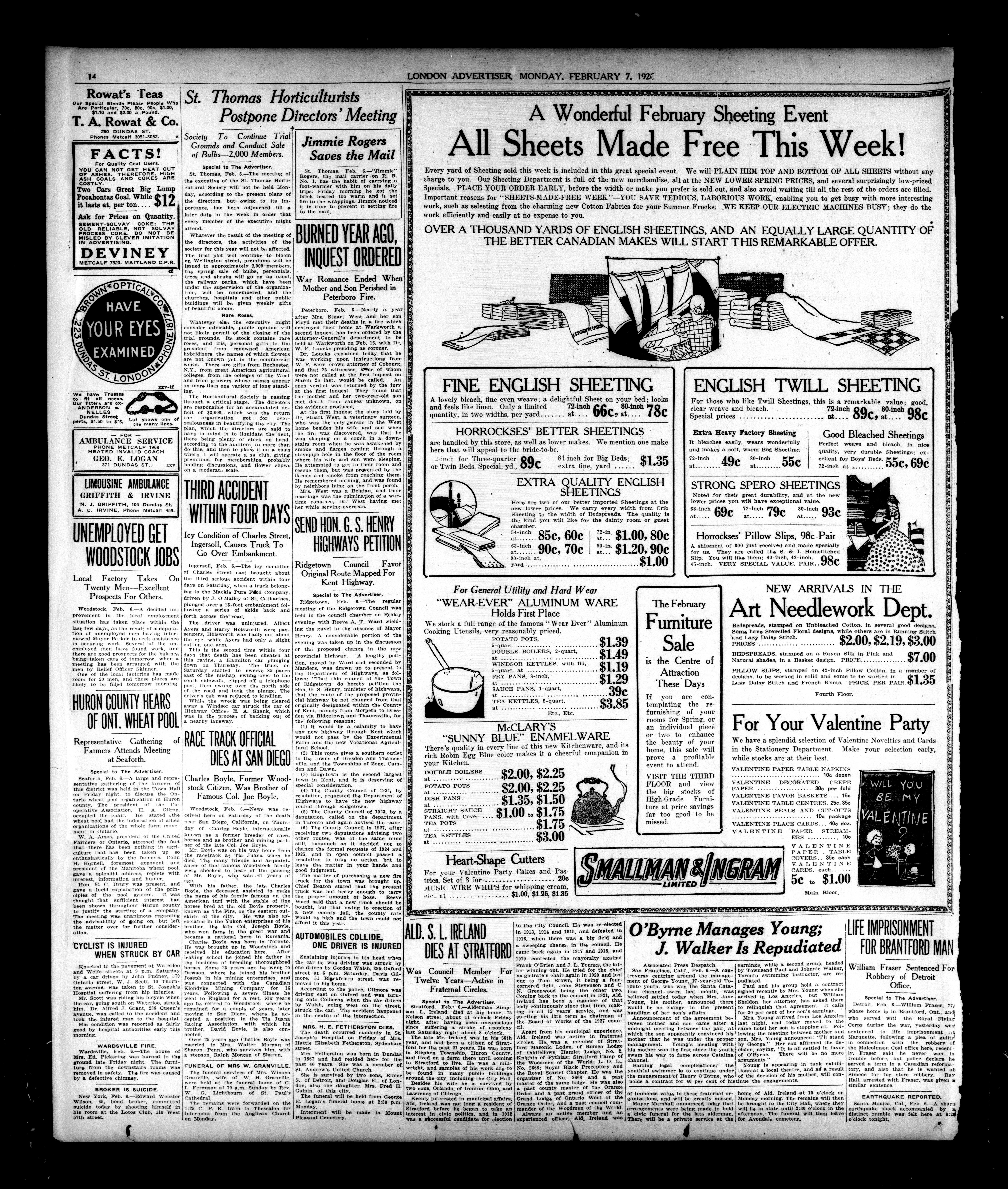 London, Ontario : London Advertiser Company, Limited, [1927]; 14 images, 0 avec recherche en texte intégral