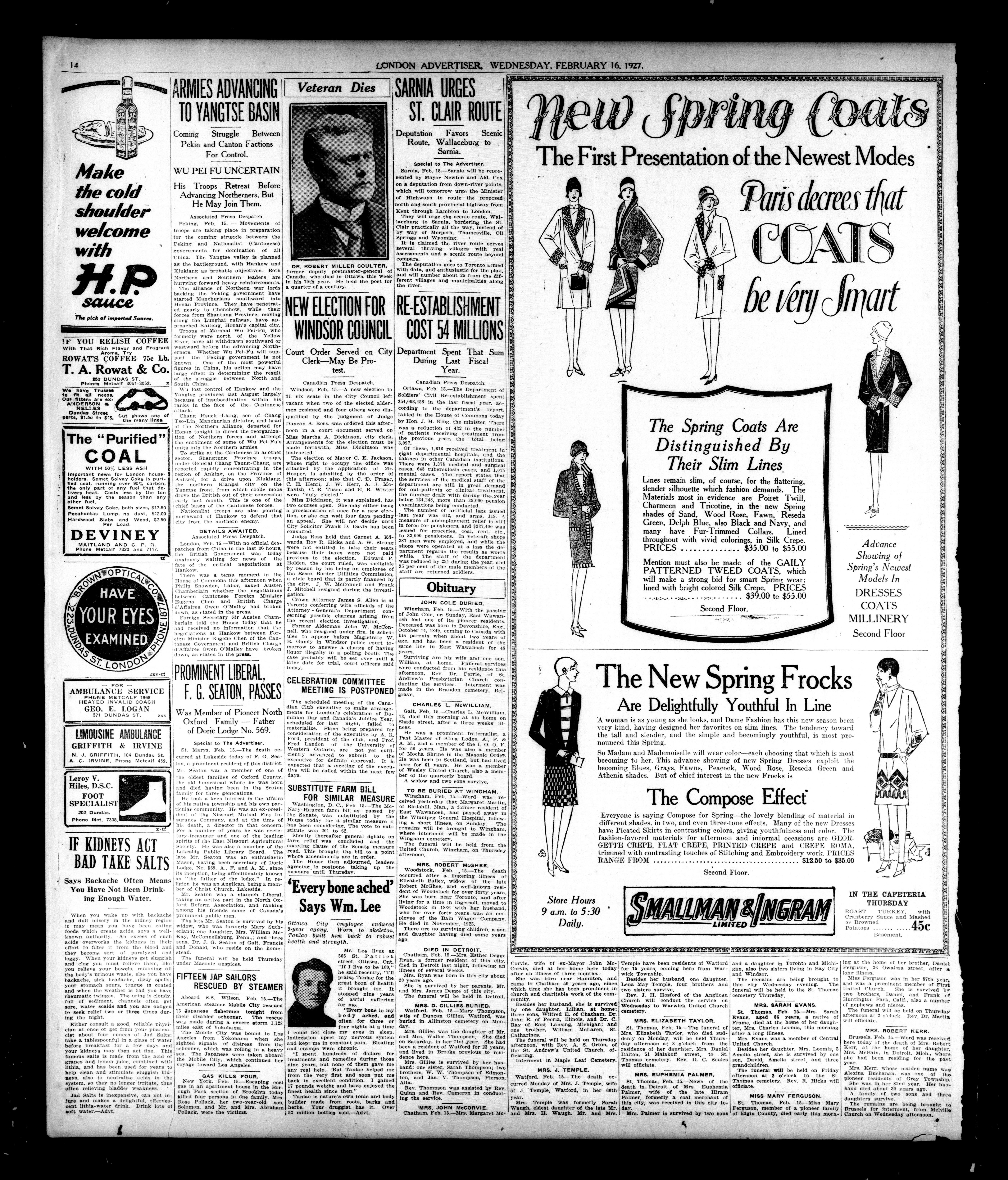 Aide London, Ontario : London Advertiser Company, Limited, [1927]; 14 images, 0 avec recherche en texte intégral