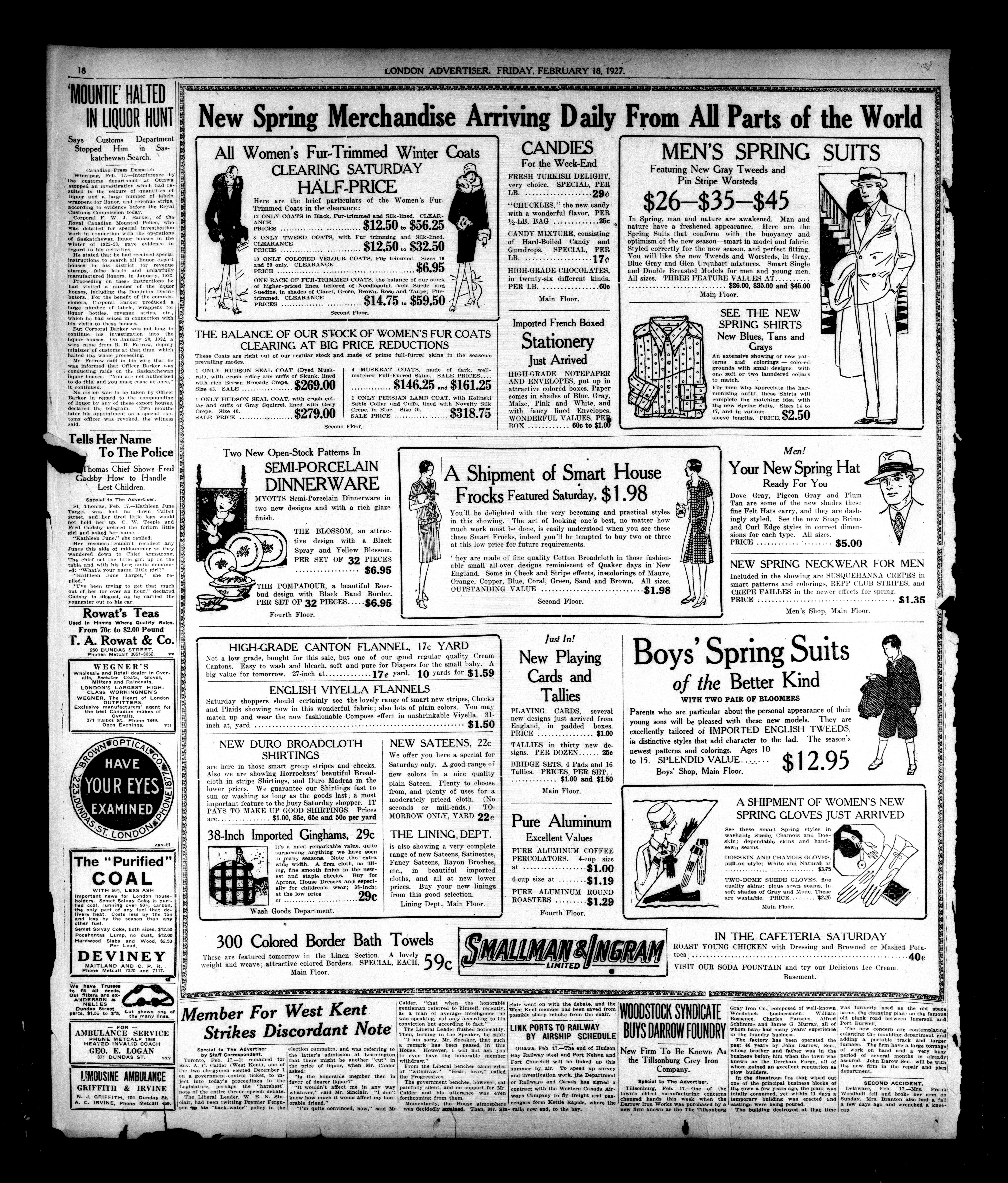 London, Ontario : London Advertiser Company, Limited, [1927]; 18 images, 0 avec recherche en texte intégral