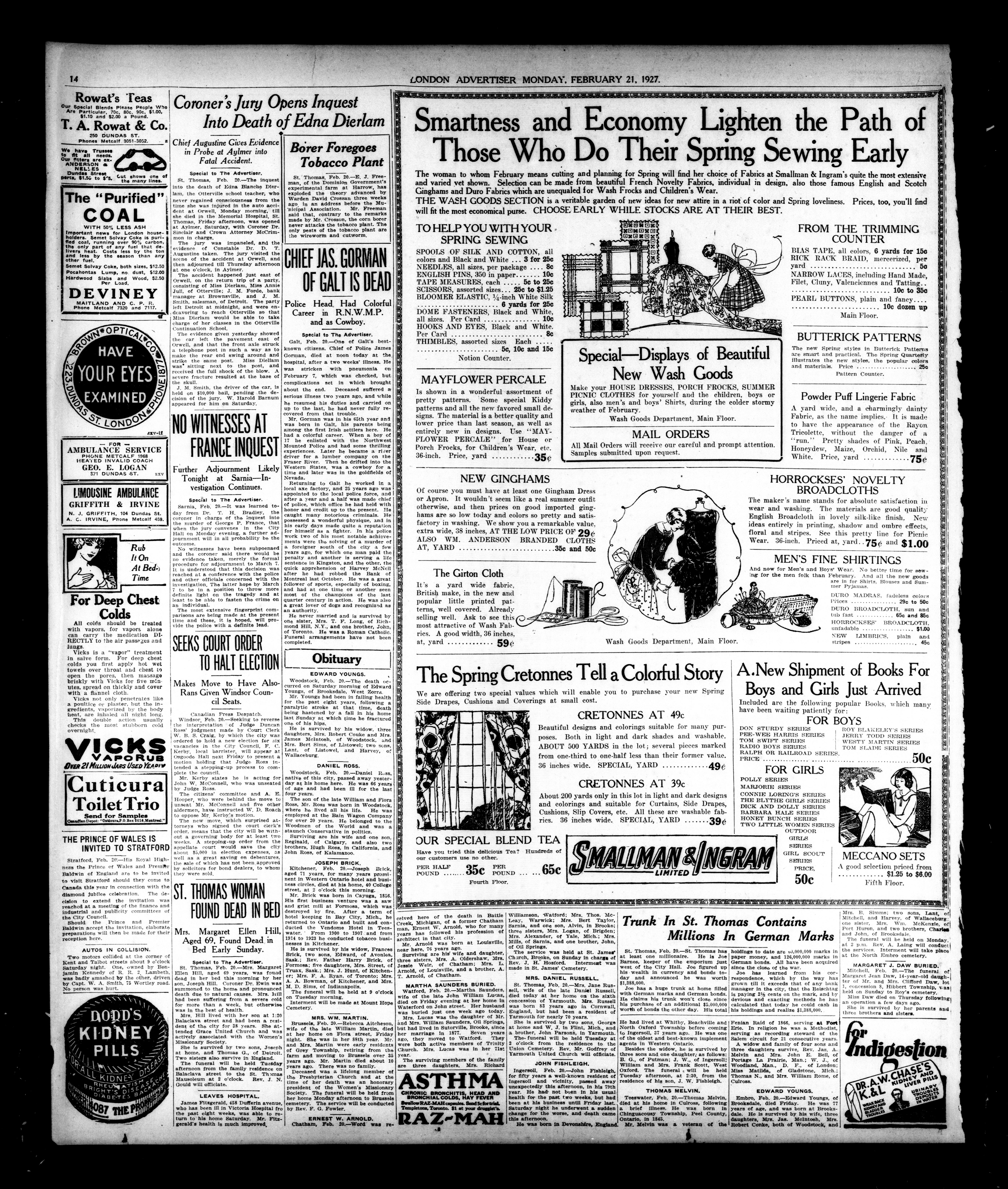 London, Ontario : London Advertiser Company, Limited, [1927]; 14 images, 0 avec recherche en texte intégral