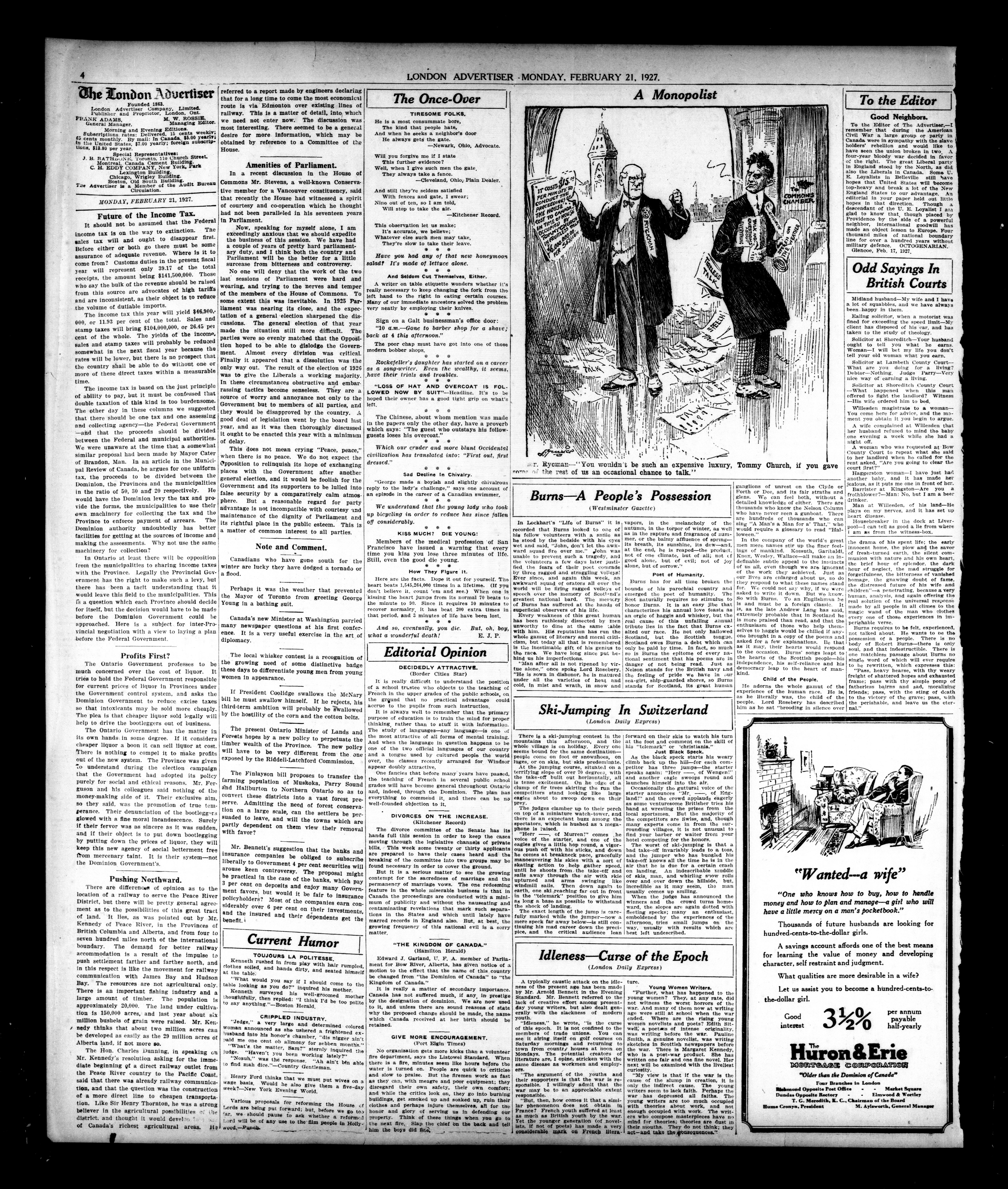 London, Ontario : London Advertiser Company, Limited, [1927]; 14 images, 0 avec recherche en texte intégral