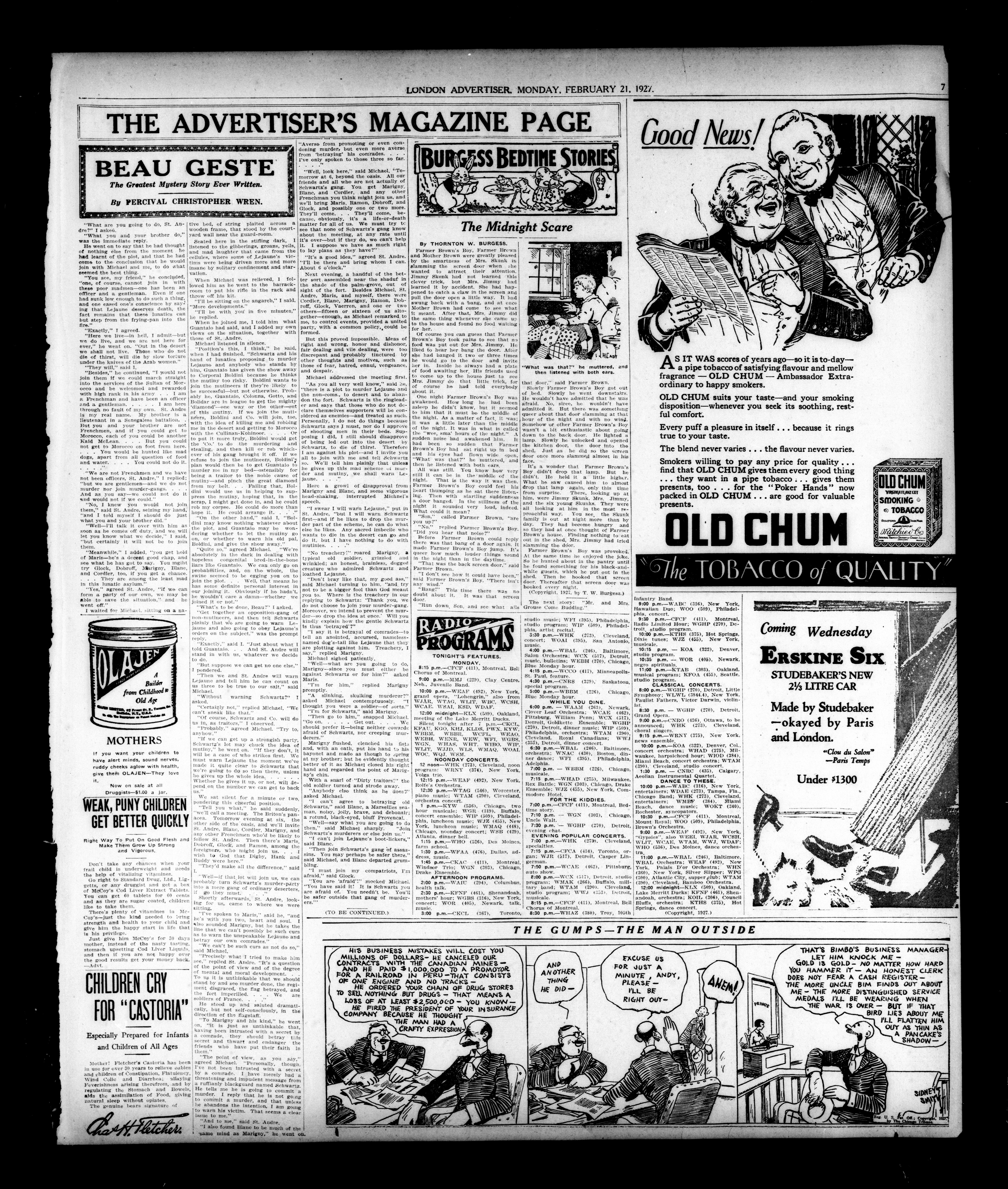 London, Ontario : London Advertiser Company, Limited, [1927]; 14 images, 0 avec recherche en texte intégral