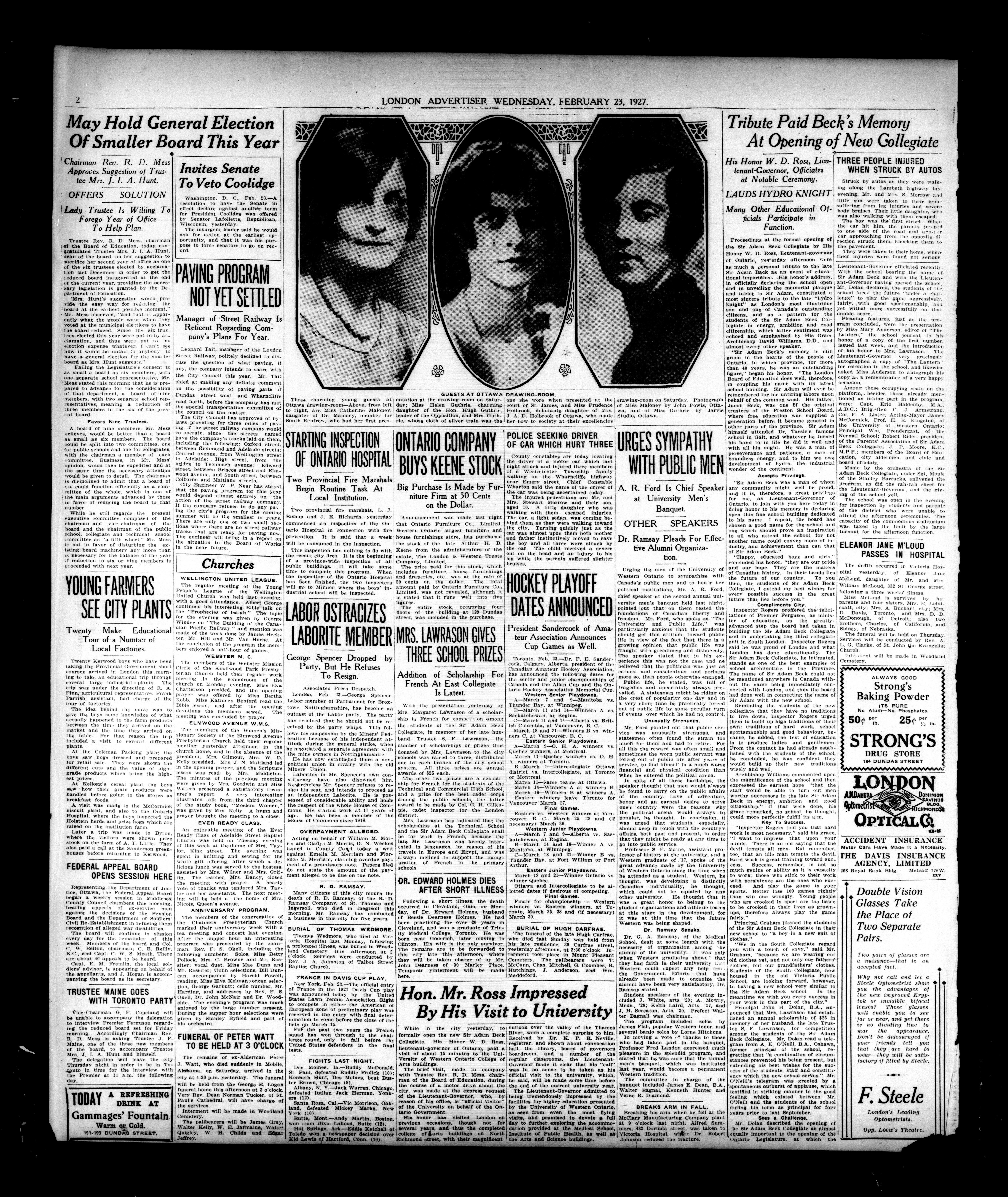 London, Ontario : London Advertiser Company, Limited, [1927]; 14 images, 0 avec recherche en texte intégral