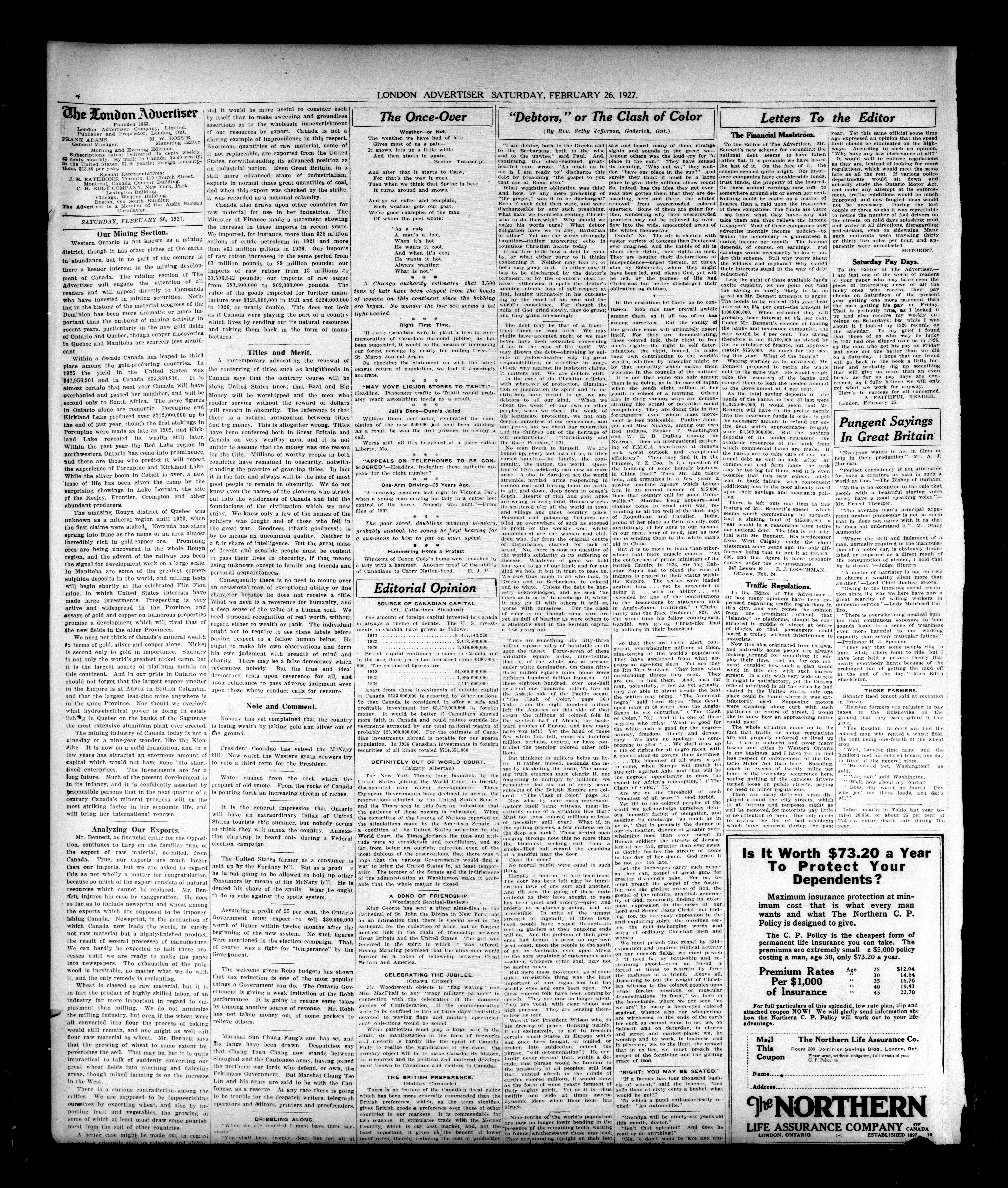 London Evening Advertiser. : London evening advertiser : 64th Year, No. 24835 (February 26, 1927)