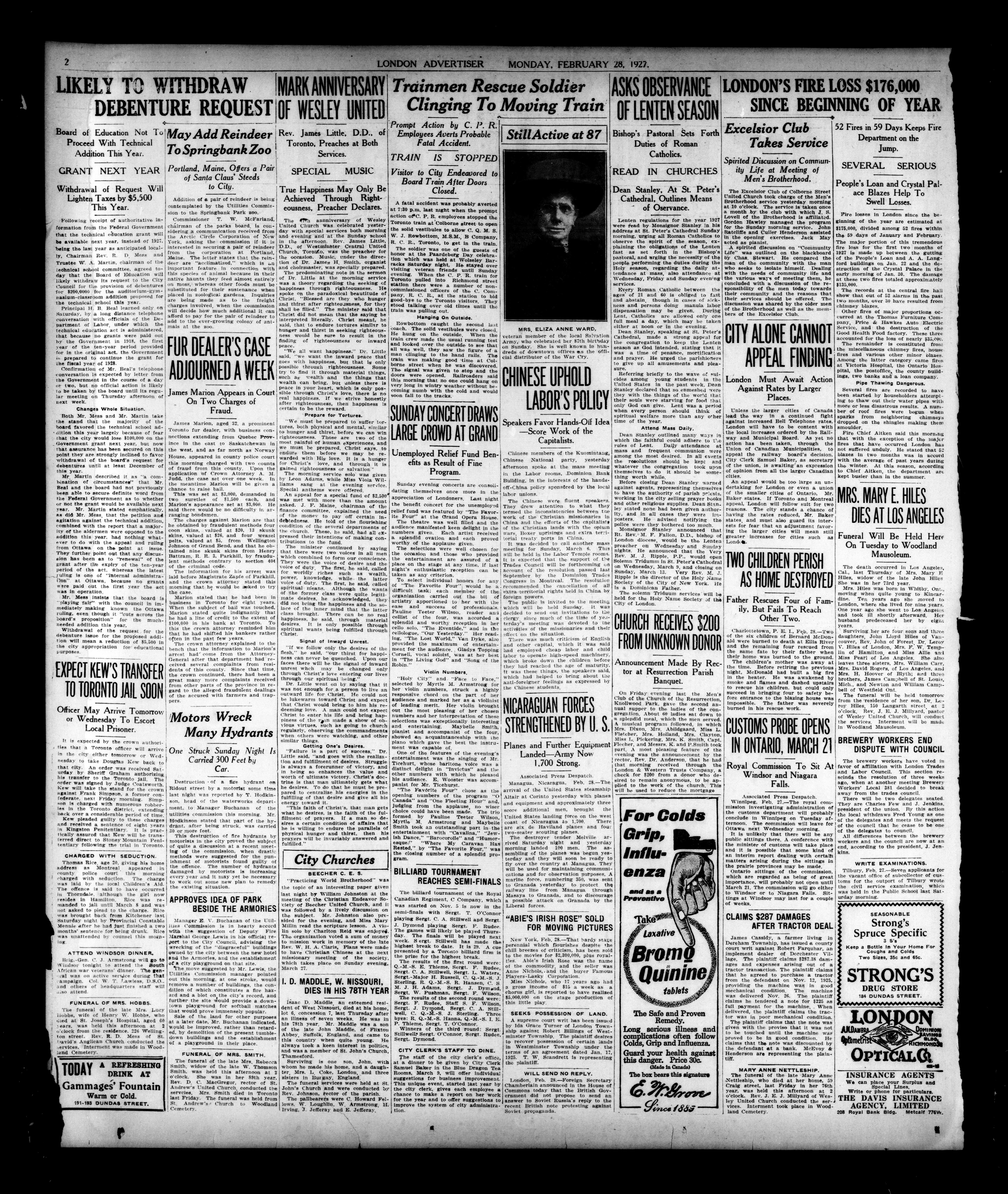London Evening Advertiser. : London evening advertiser : 64th Year, No. 24836 (February 28, 1927)