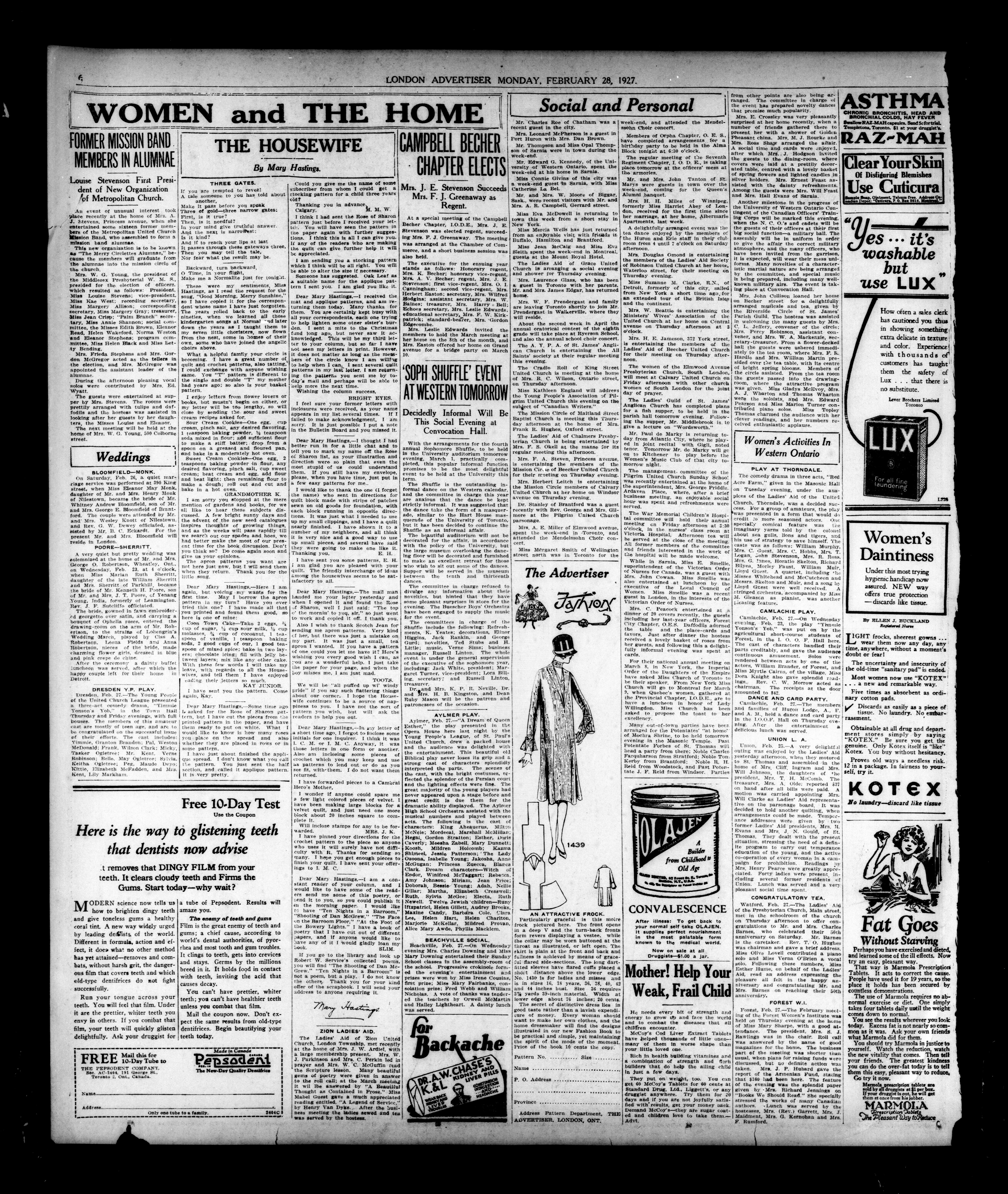 Aide London, Ontario : London Advertiser Company, Limited, [1927]; 16 images, 0 avec recherche en texte intégral