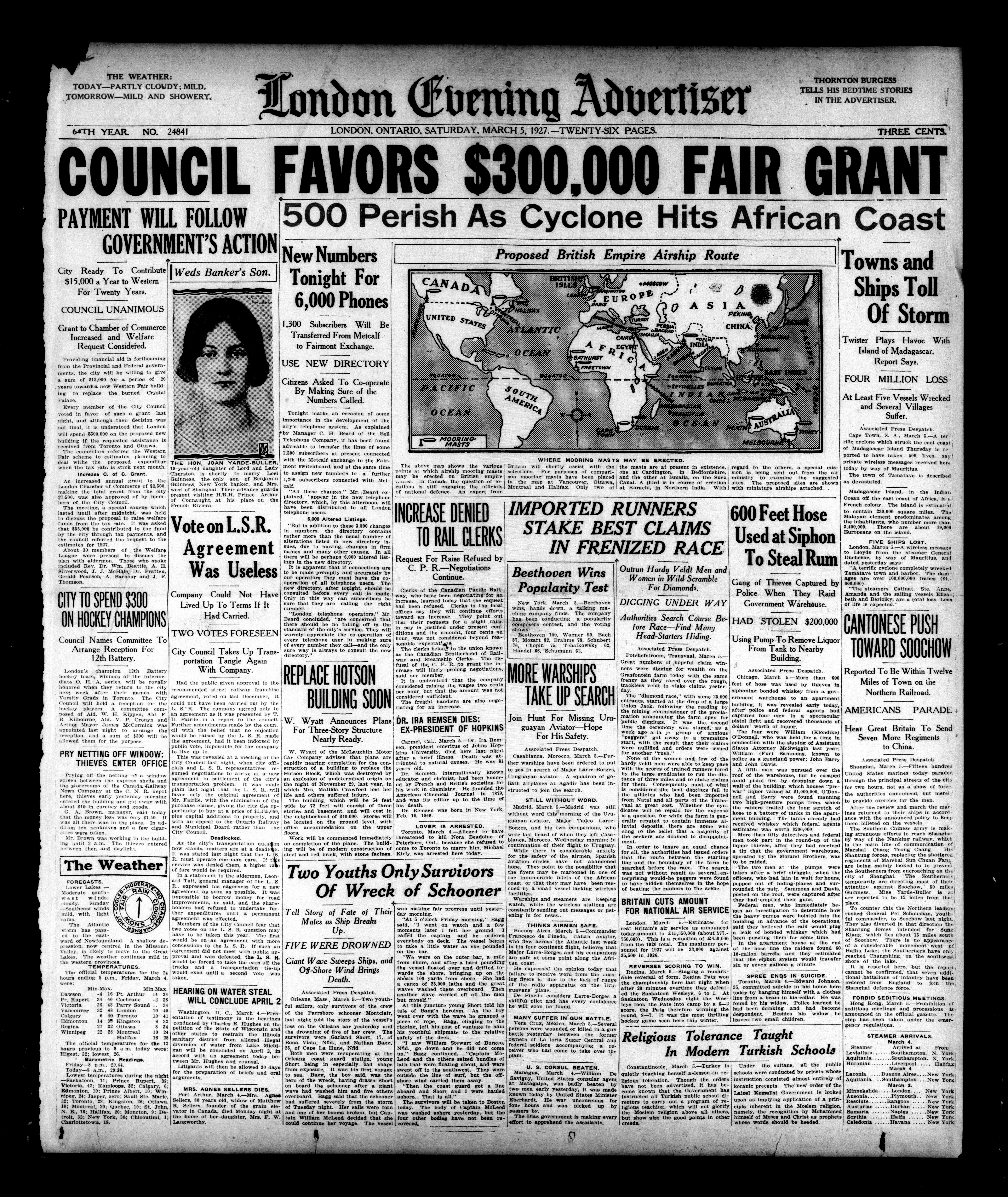 London Evening Advertiser. : London evening advertiser : 64th Year, No. 24841 (March 5, 1927)