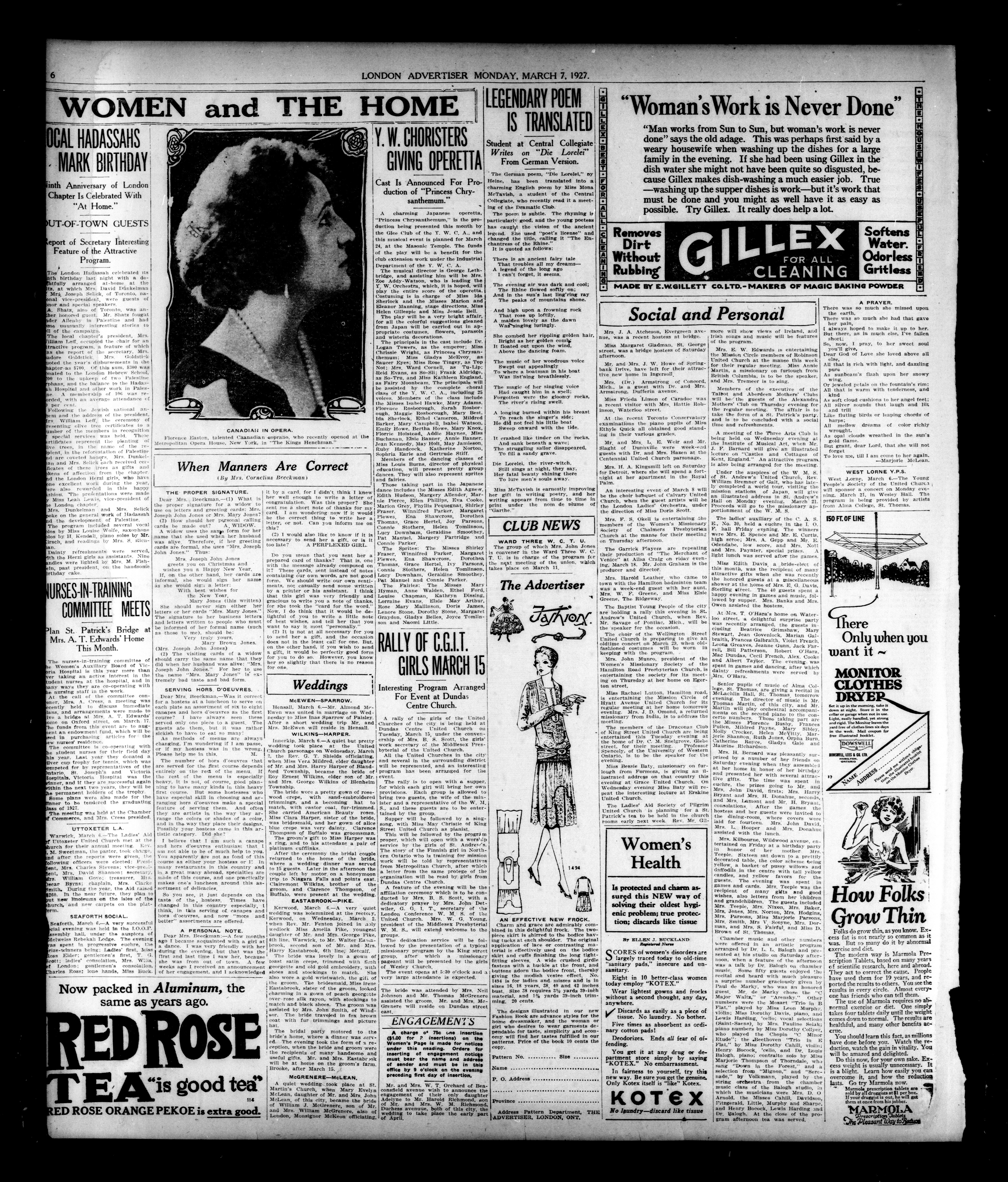 London, Ontario : London Advertiser Company, Limited, [1927]; 16 images, 0 avec recherche en texte intégral