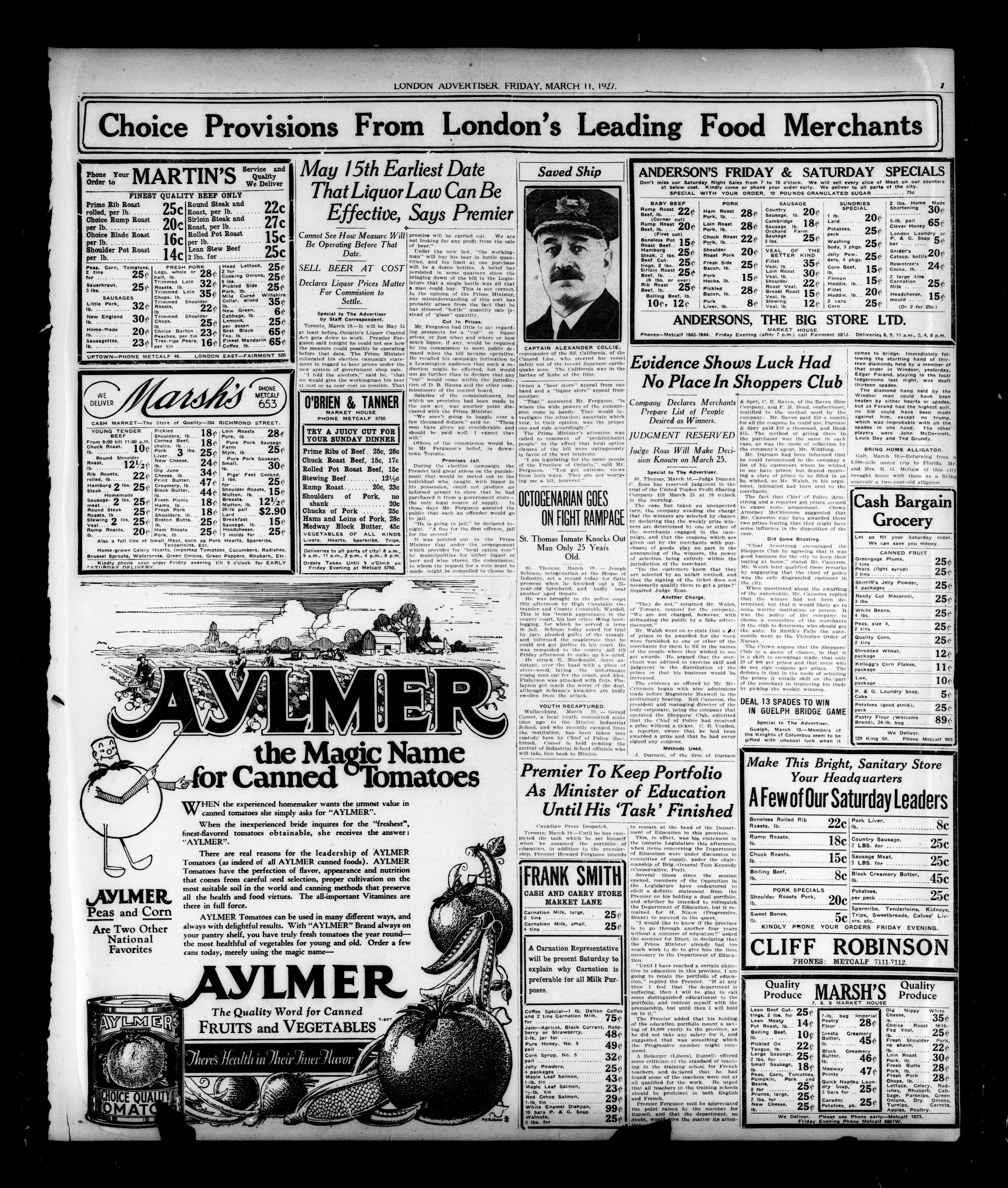 London, Ontario : London Advertiser Company, Limited, [1927]; 18 images, 0 avec recherche en texte intégral