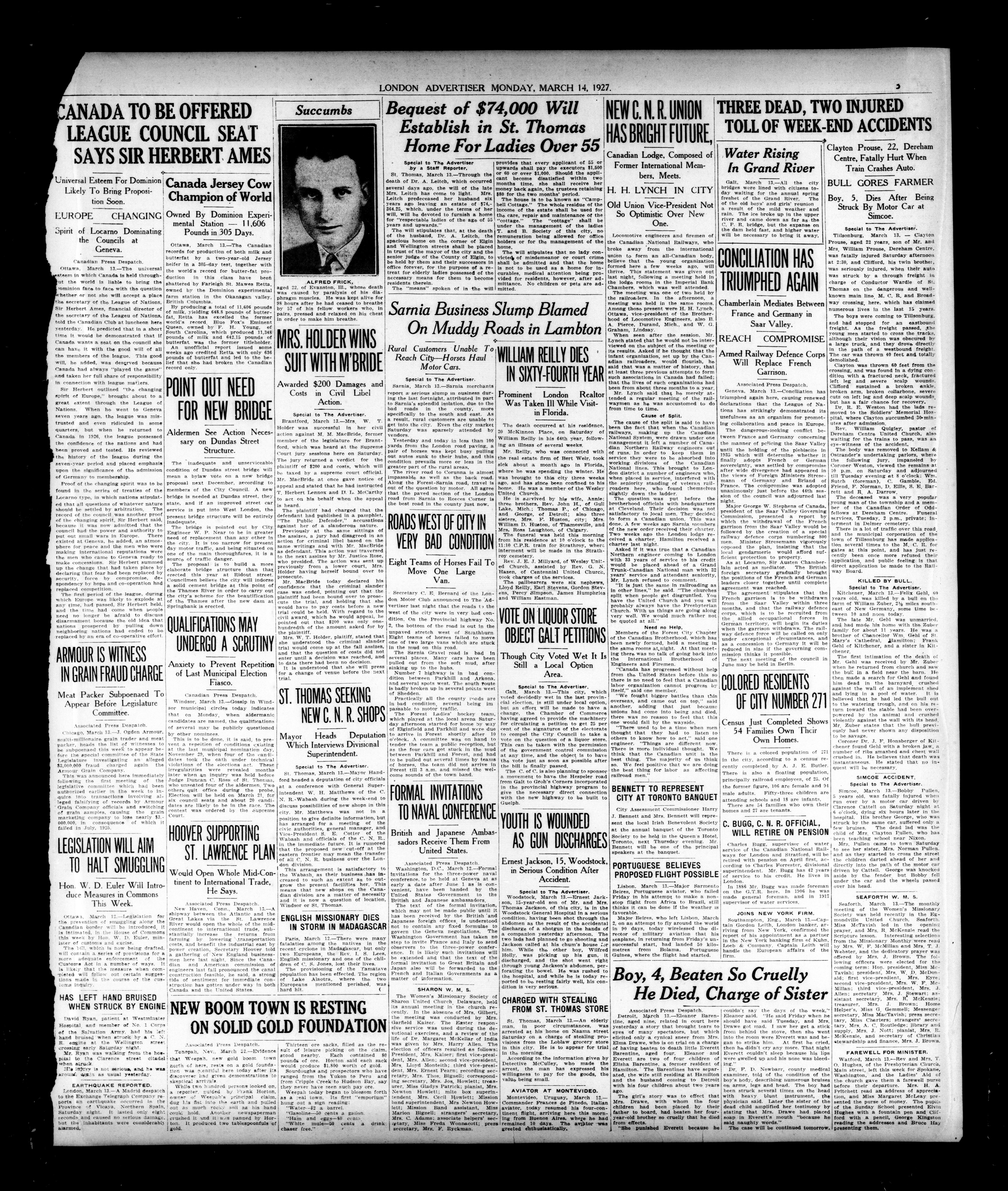 London, Ontario : London Advertiser Company, Limited, [1927]; 14 images, 0 avec recherche en texte intégral