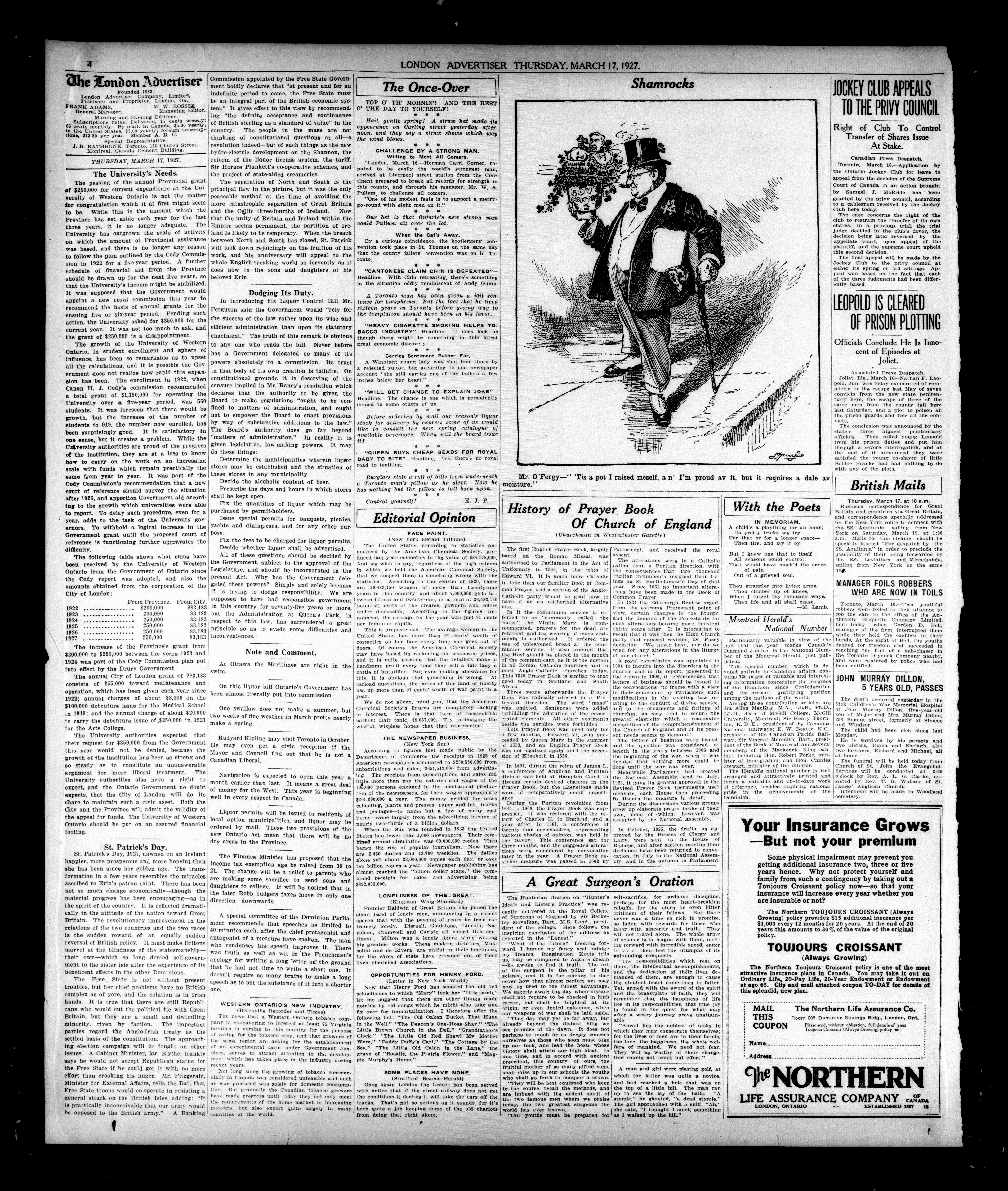 London, Ontario : London Advertiser Company, Limited, [1927]; 16 images, 0 avec recherche en texte intégral