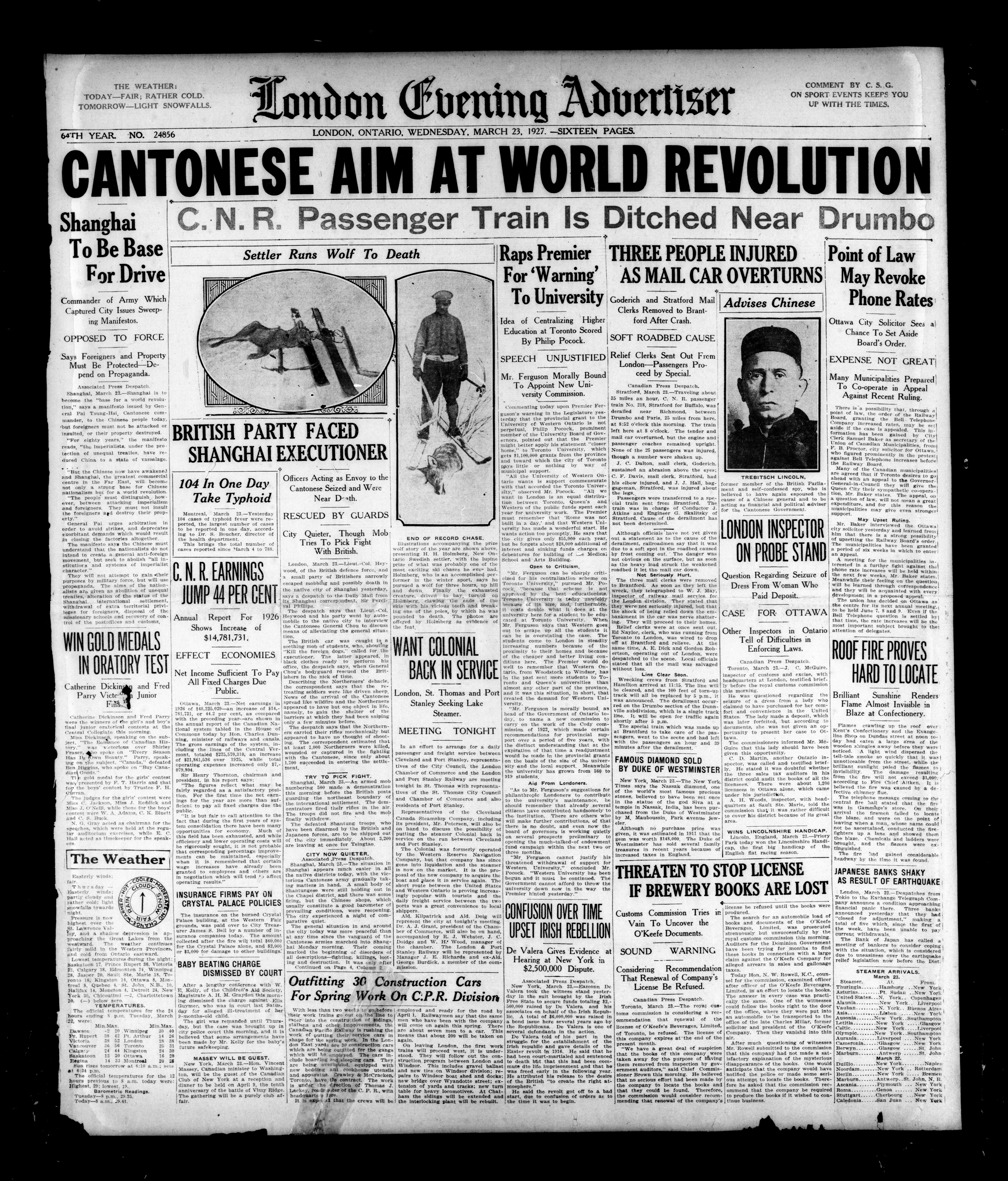 London, Ontario : London Advertiser Company, Limited, [1927]; 16 images, 0 avec recherche en texte intégral