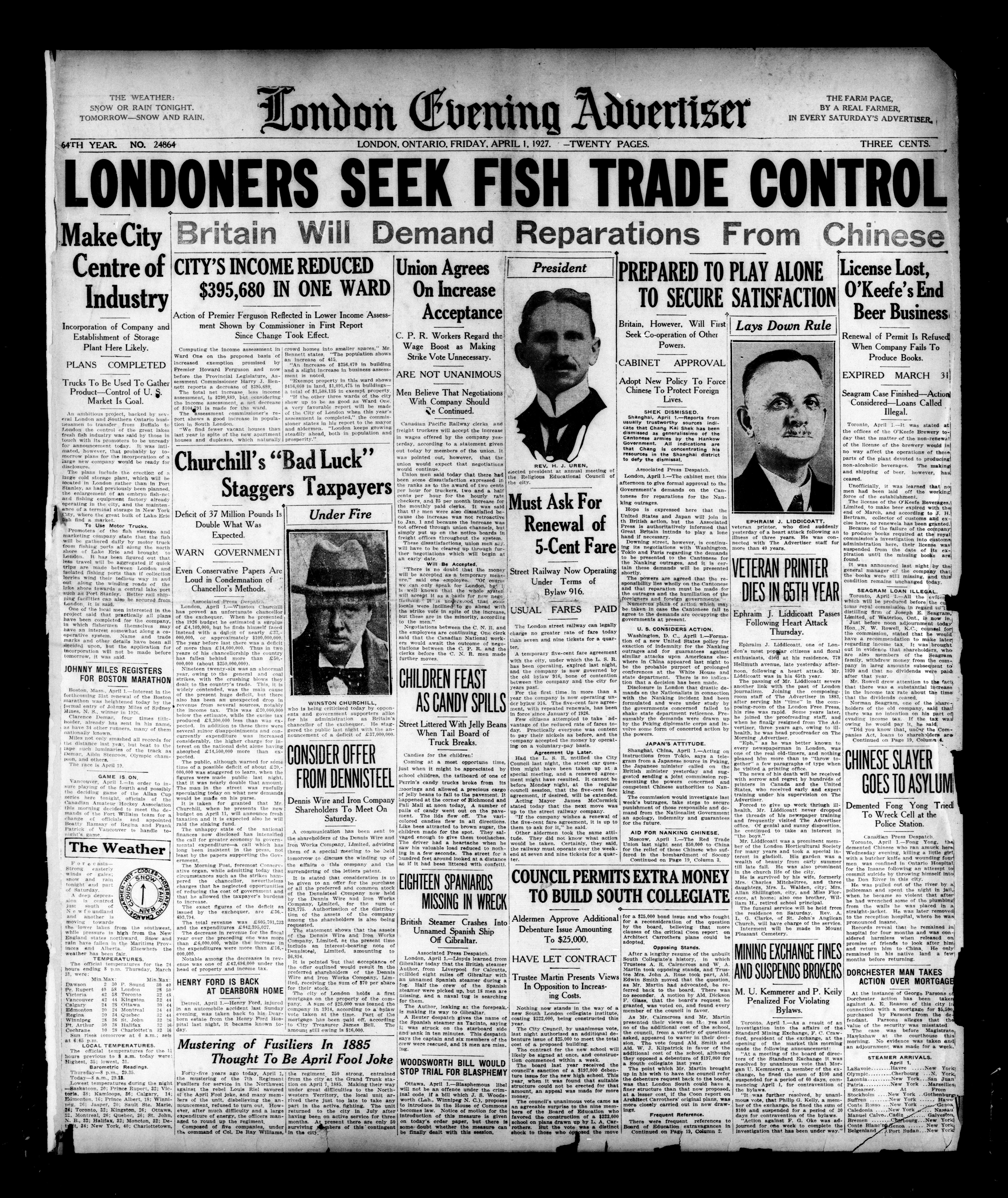 London evening advertiser : 64th Year, No. 24864 (April 1, 1927) - Adresse bibliographique