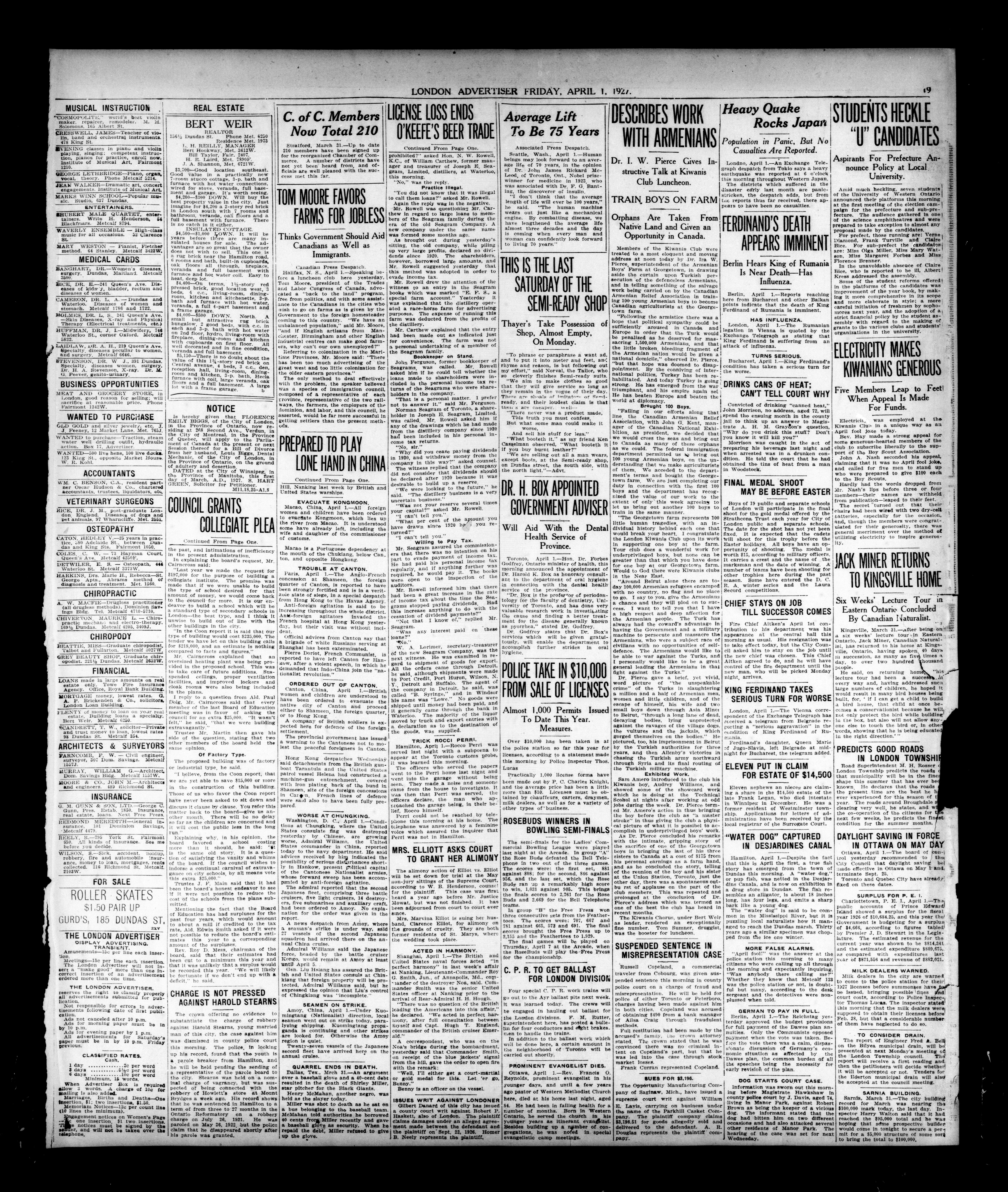 London, Ontario : London Advertiser Company, Limited, [1927]; 20 images, 0 avec recherche en texte intégral