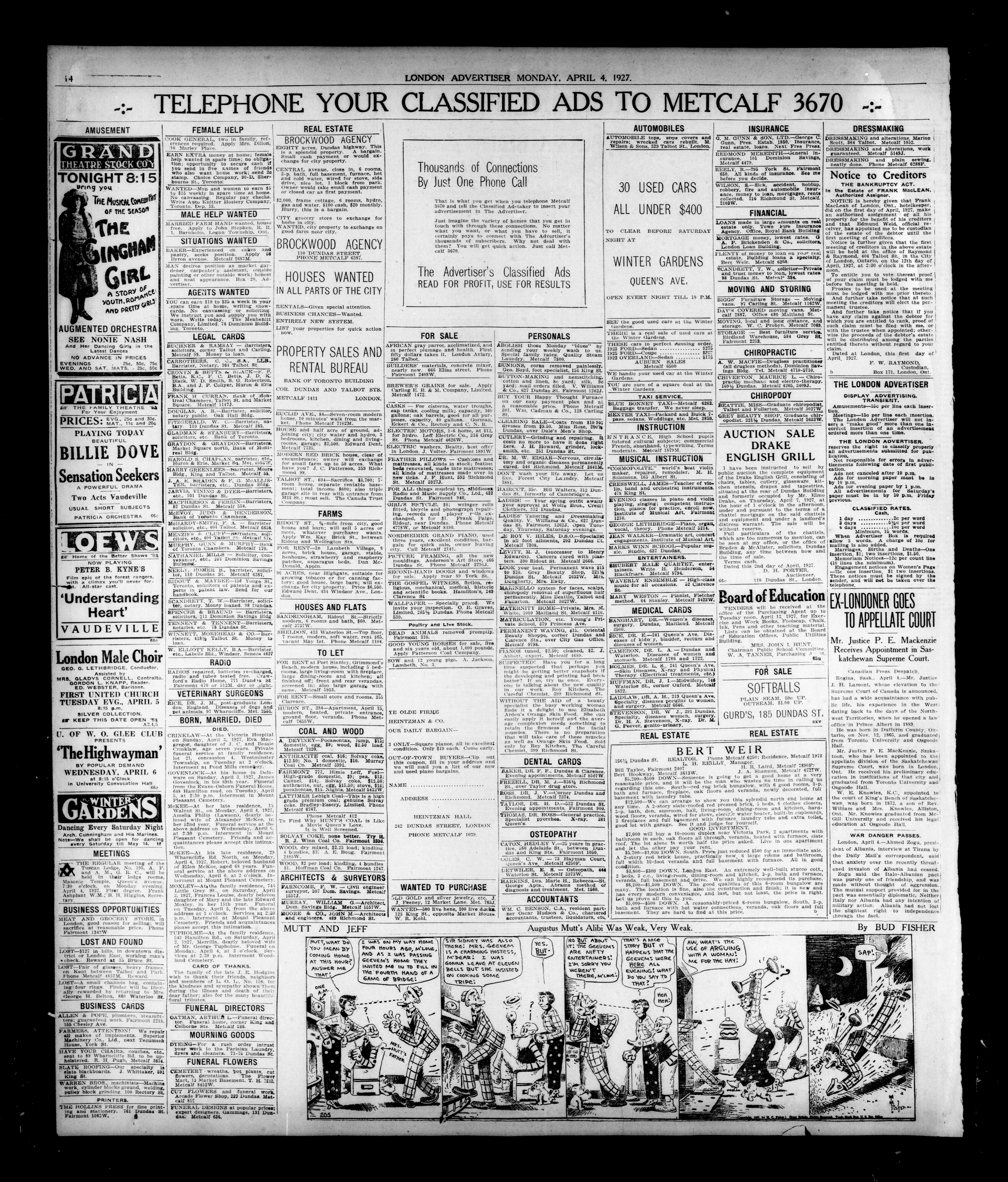 London Evening Advertiser. : London evening advertiser : 64th Year, No. 24866 (April 4, 1927)
