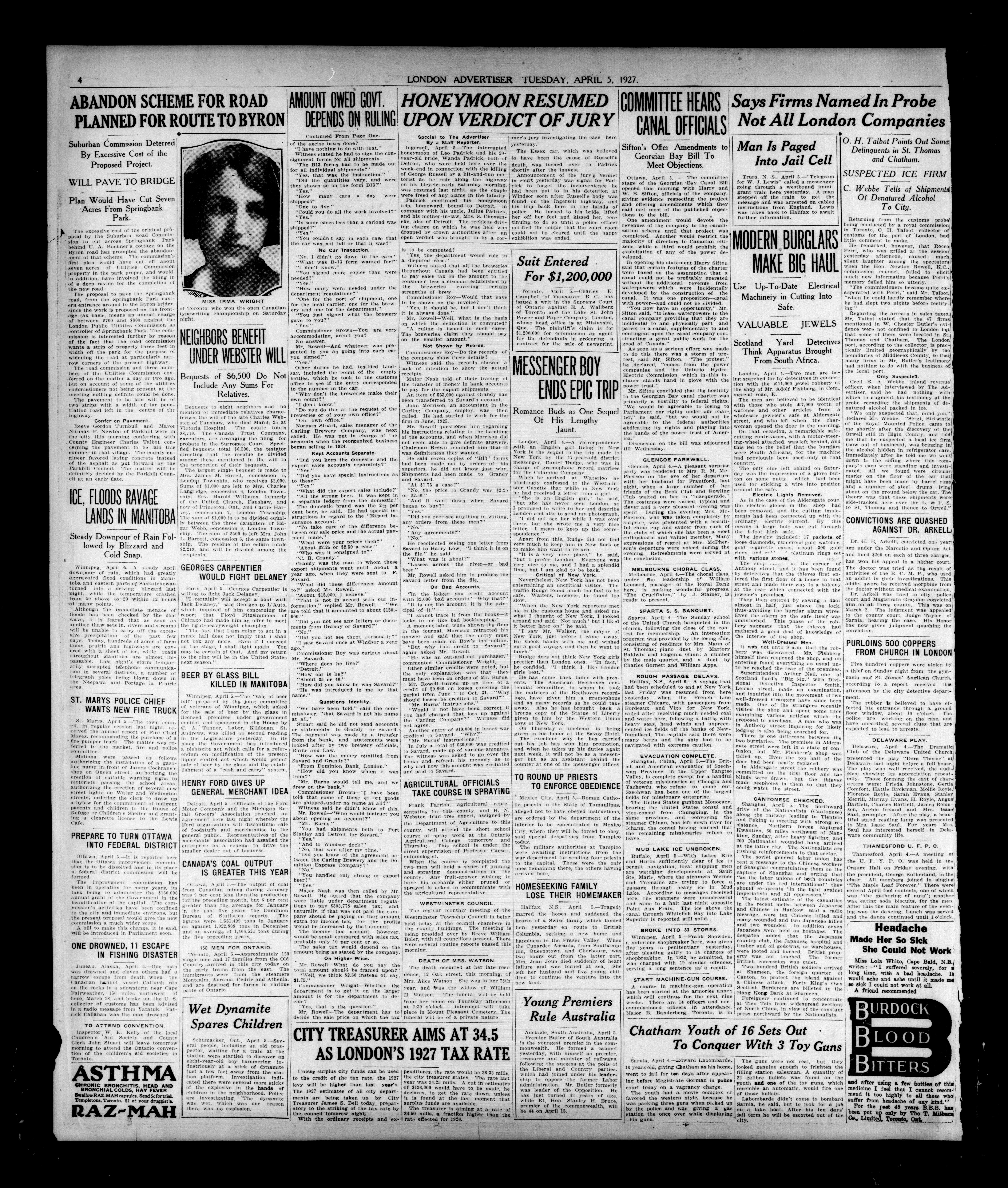 London, Ontario : London Advertiser Company, Limited, [1927]; 16 images, 0 avec recherche en texte intégral