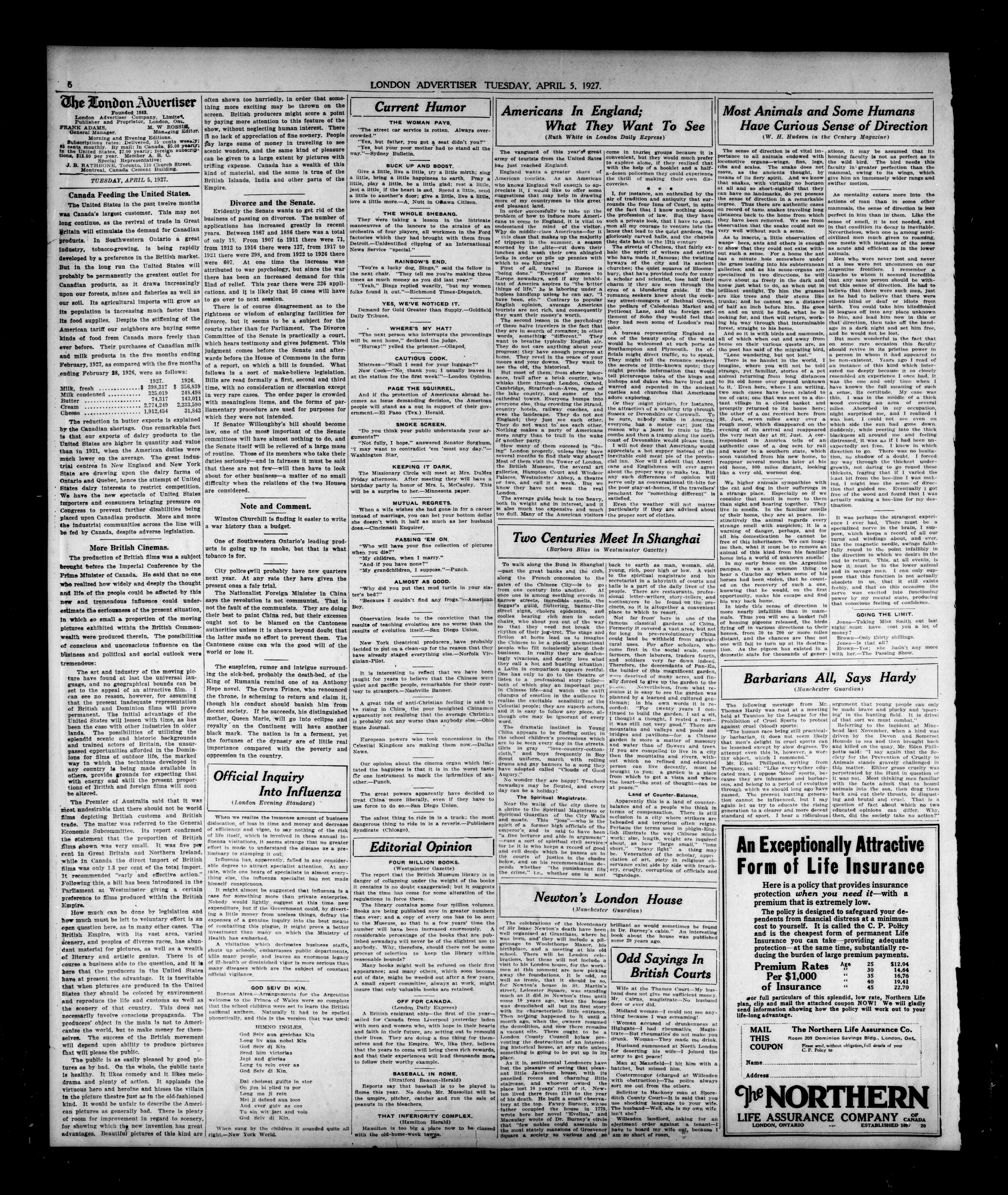 London Evening Advertiser. : London evening advertiser : 64th Year, No. 24867 (April 5, 1927)