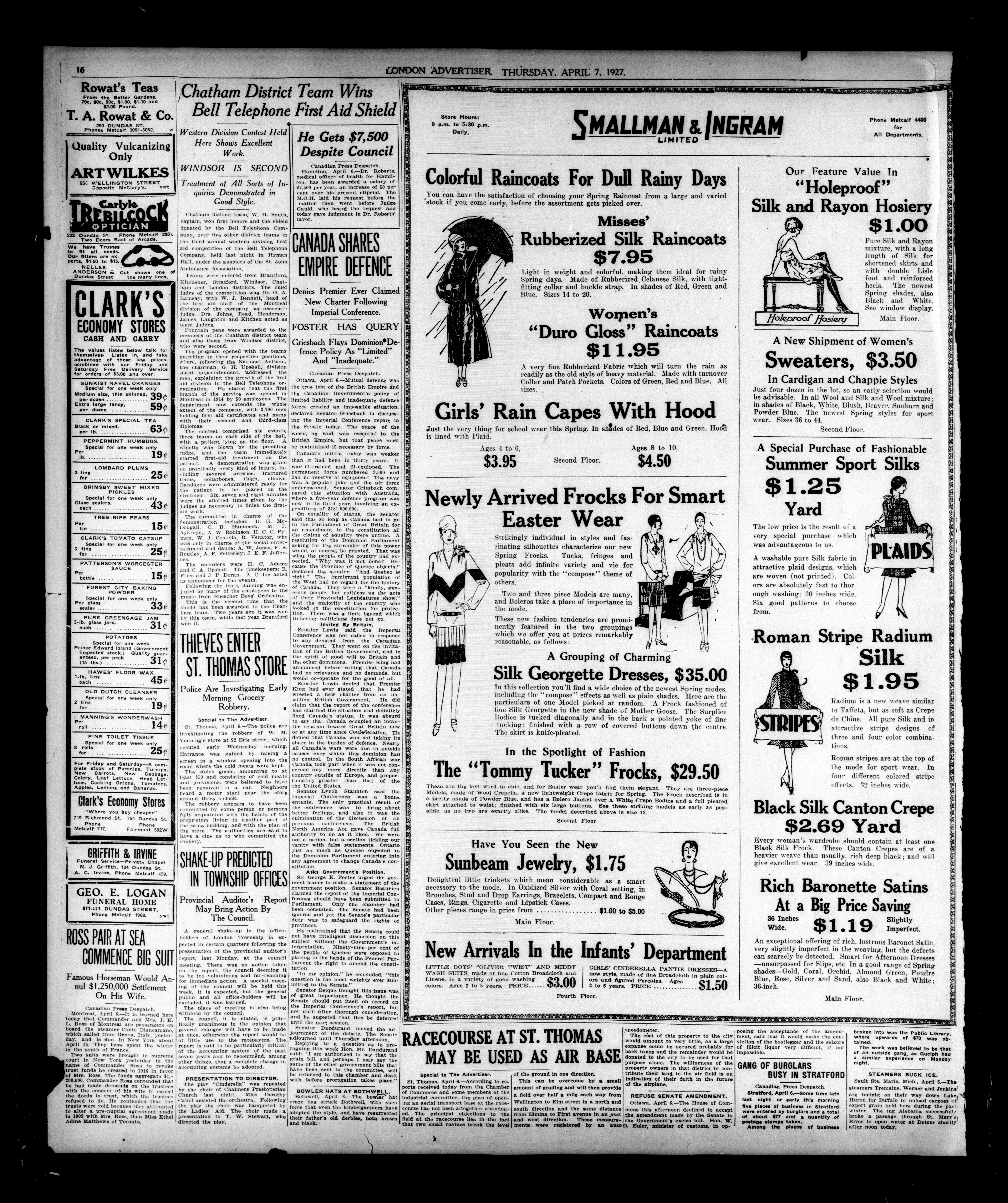 Aide London, Ontario : London Advertiser Company, Limited, [1927]; 16 images, 0 avec recherche en texte intégral