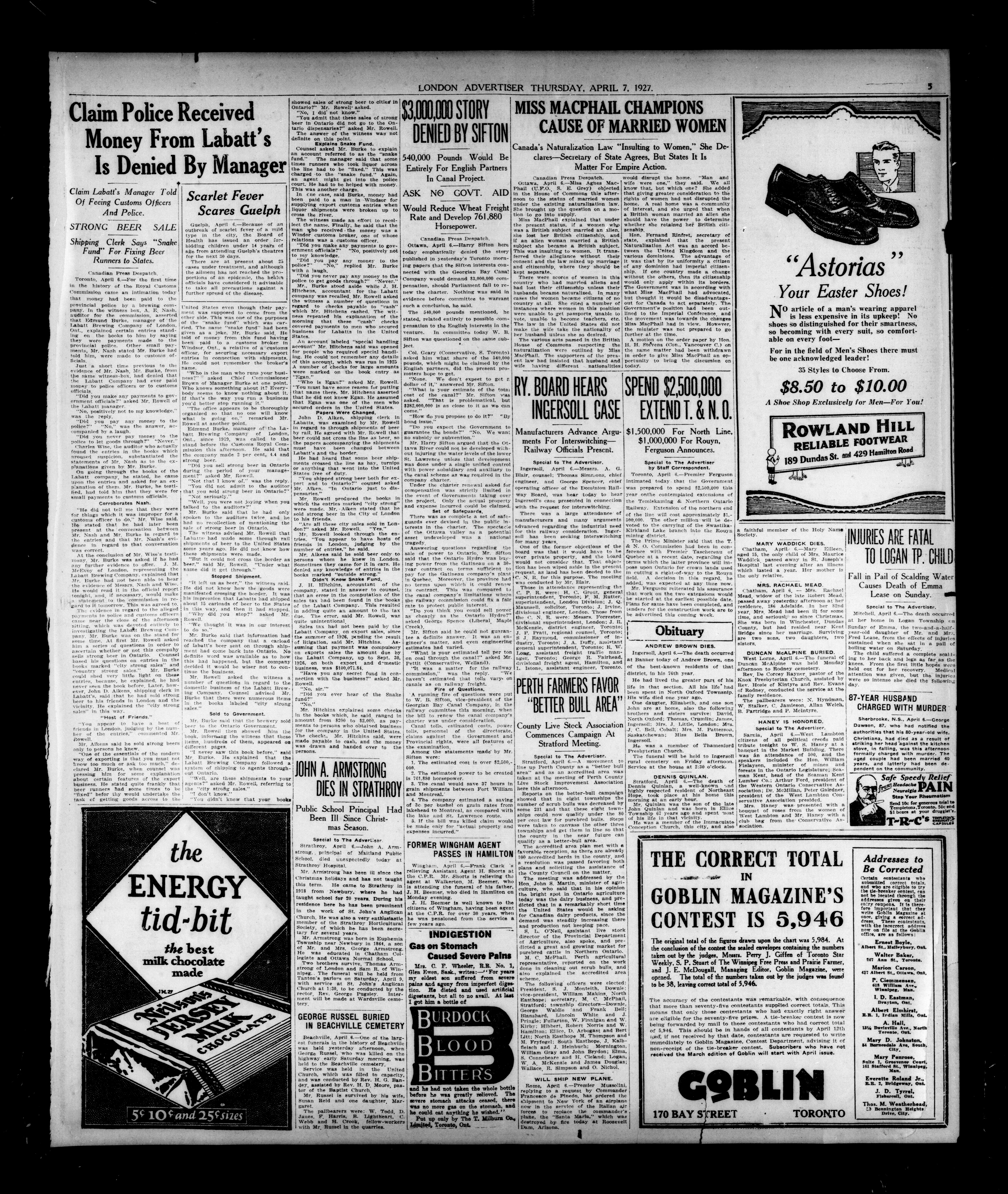 London Evening Advertiser. : London evening advertiser : 64th Year, No. 24869 (April 7, 1927)