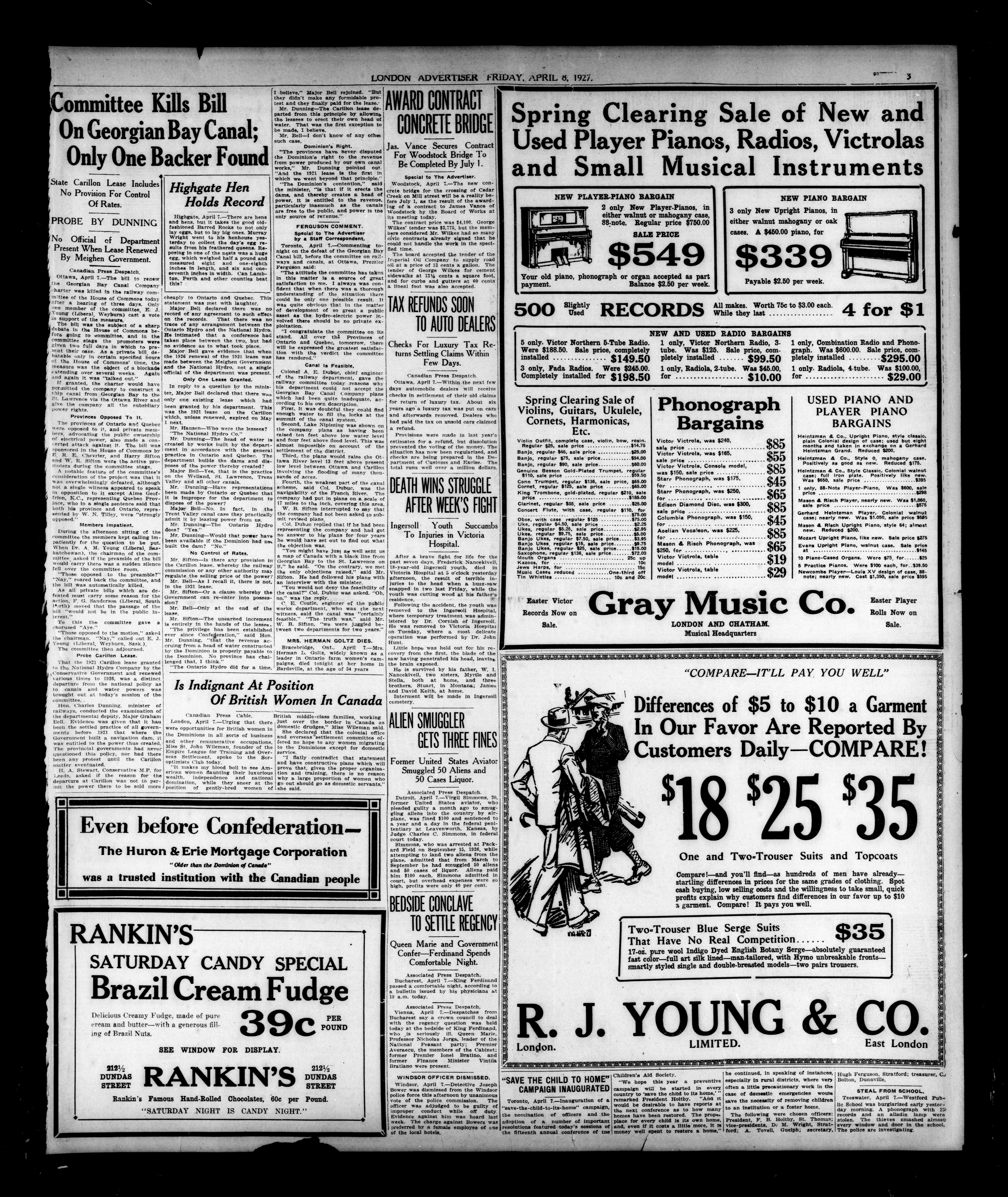 London, Ontario : London Advertiser Company, Limited, [1927]; 20 images, 0 avec recherche en texte intégral
