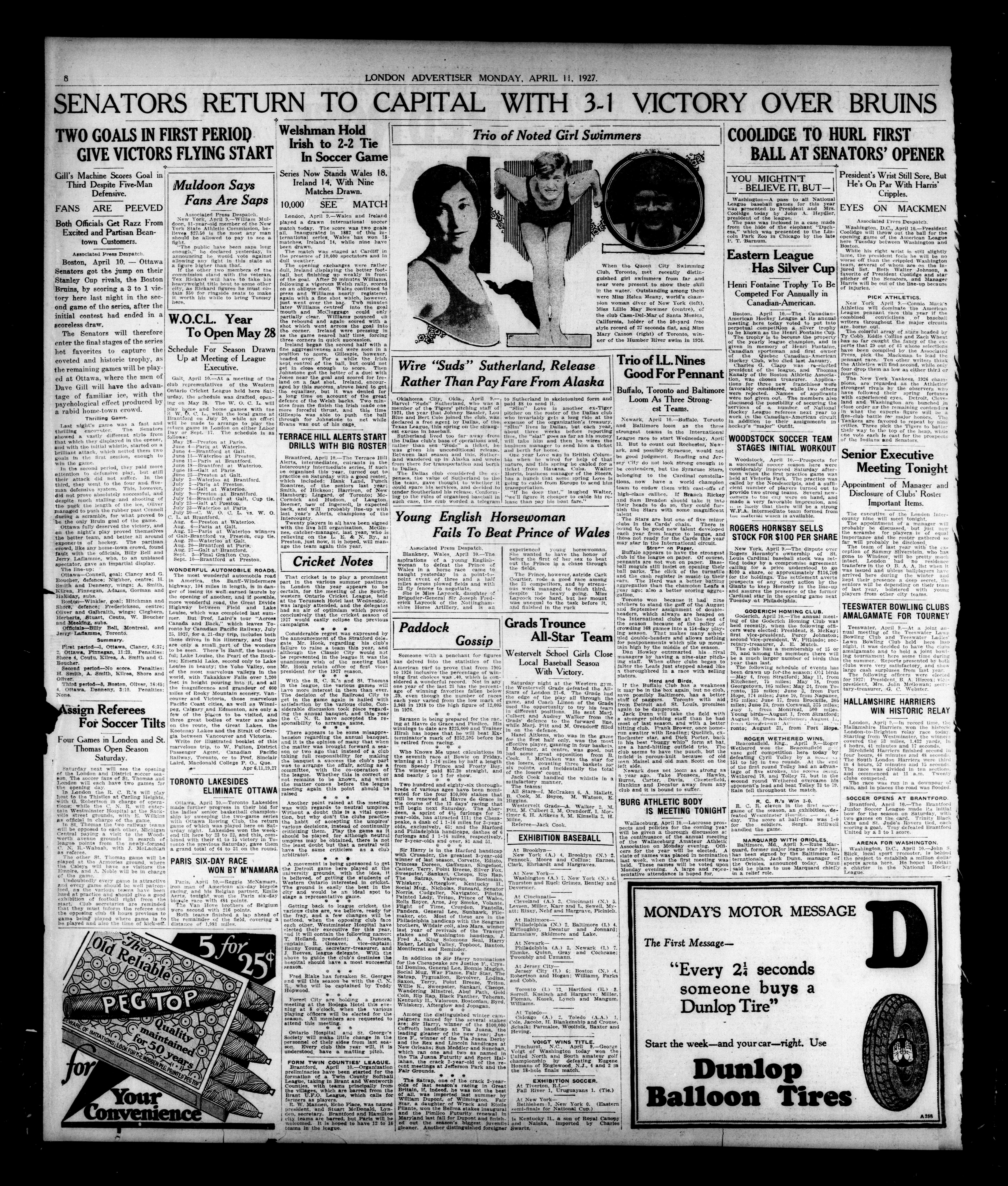 London Evening Advertiser. : London evening advertiser : 64th Year, No. 24872 (April 11, 1927)