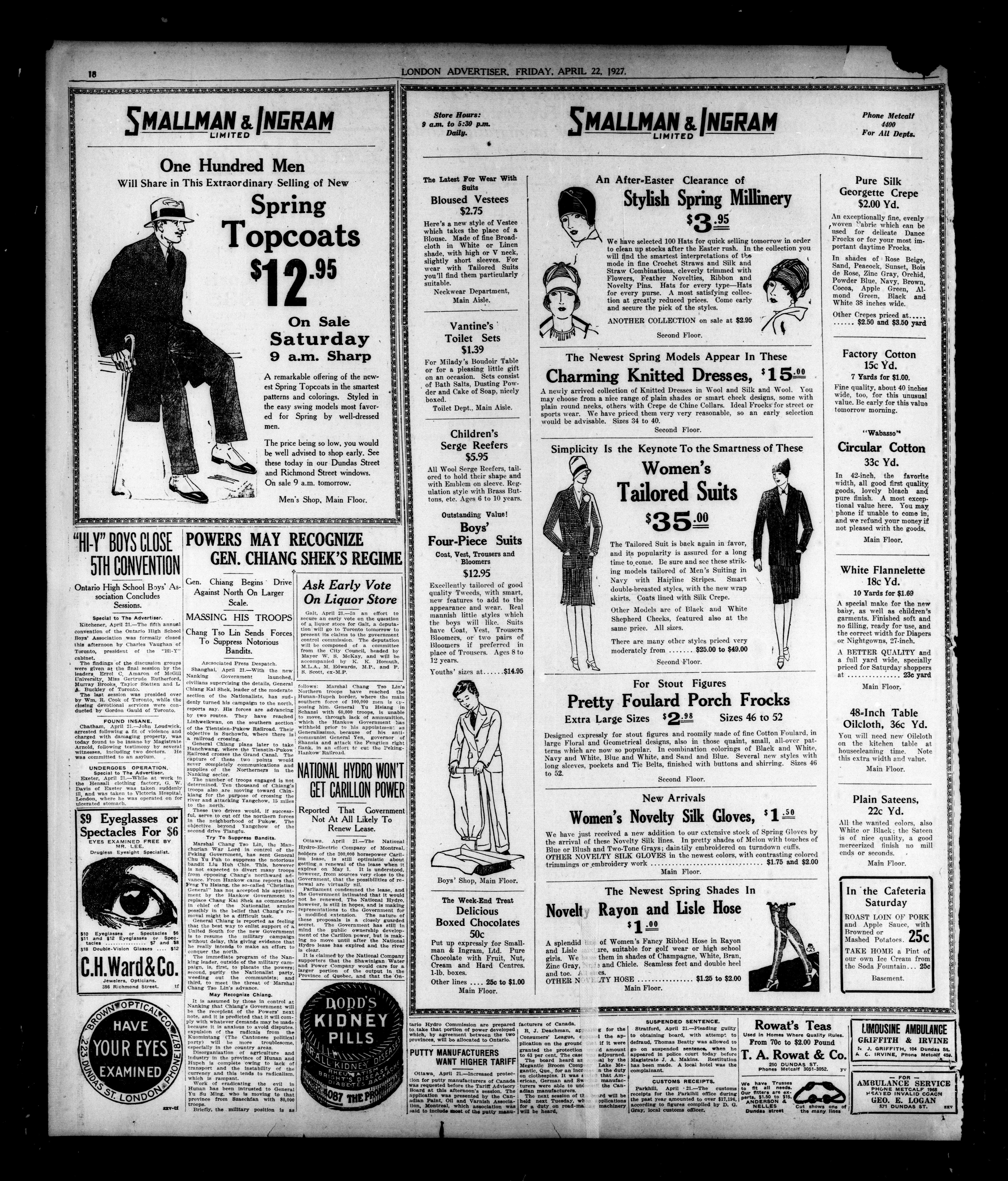 Aide London, Ontario : London Advertiser Company, Limited, [1927]; 18 images, 0 avec recherche en texte intégral